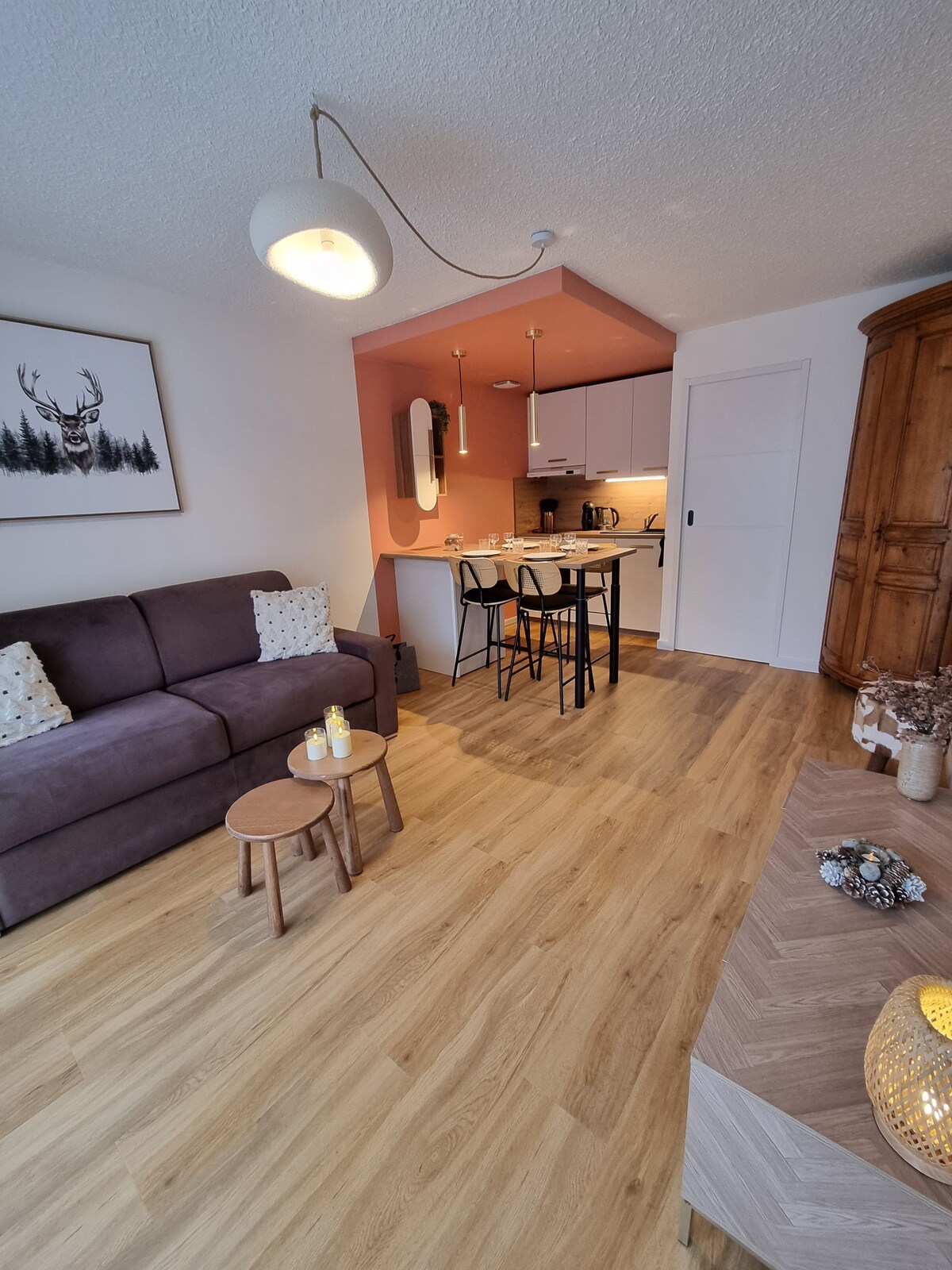 25㎡のフル装備アパートメント:テレビ、オーブン、コンロ、トースター、ラクレット、フォンデュ。 アパートにはバスタブ付きのバスルームと独立したトイレがあります。 寝室: リビングにダブルベッド1台、ダブルベッド1台+シングルベッド1台のコーナー。 ベビーベッドとハイチェアがご利用いただけます。 山の景色を望むバルコニー。 ゲレンデの麓に位置し、スキーリフトに近い理想的なロケーション。 建物の下に(有料の)屋根付き駐車場があります。
