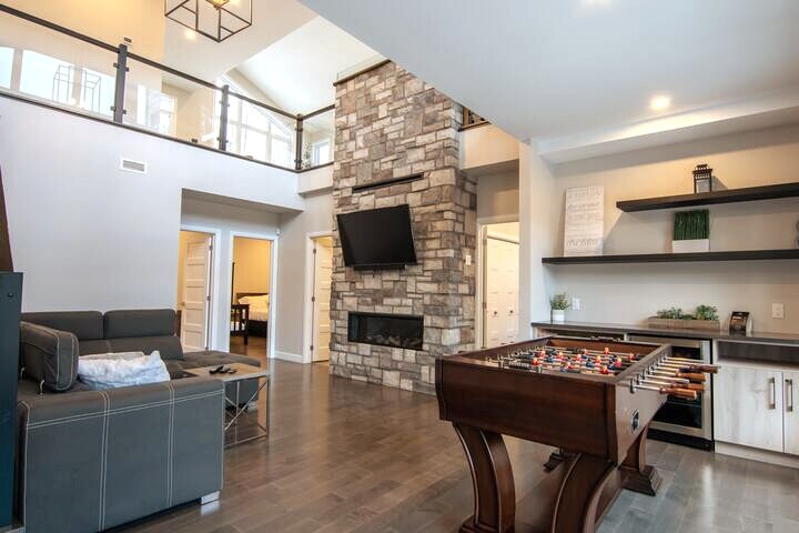 アサンプション川沿いの新しい豪華なウォーターフロントシャレーに逃避しましょう。3,200平方フィートのこの家からは、素晴らしい山の景色を眺めることができ、8人用のホットタブとゲームルームもあります。9名様が快適に過ごせる、モントリオールからわずか1時間、スキー場から数分の完璧で親密な隠れ家です。最高品質の手作りのディテールと川への直接アクセスを楽しんで、思い出に残る滞在をお過ごしください。
