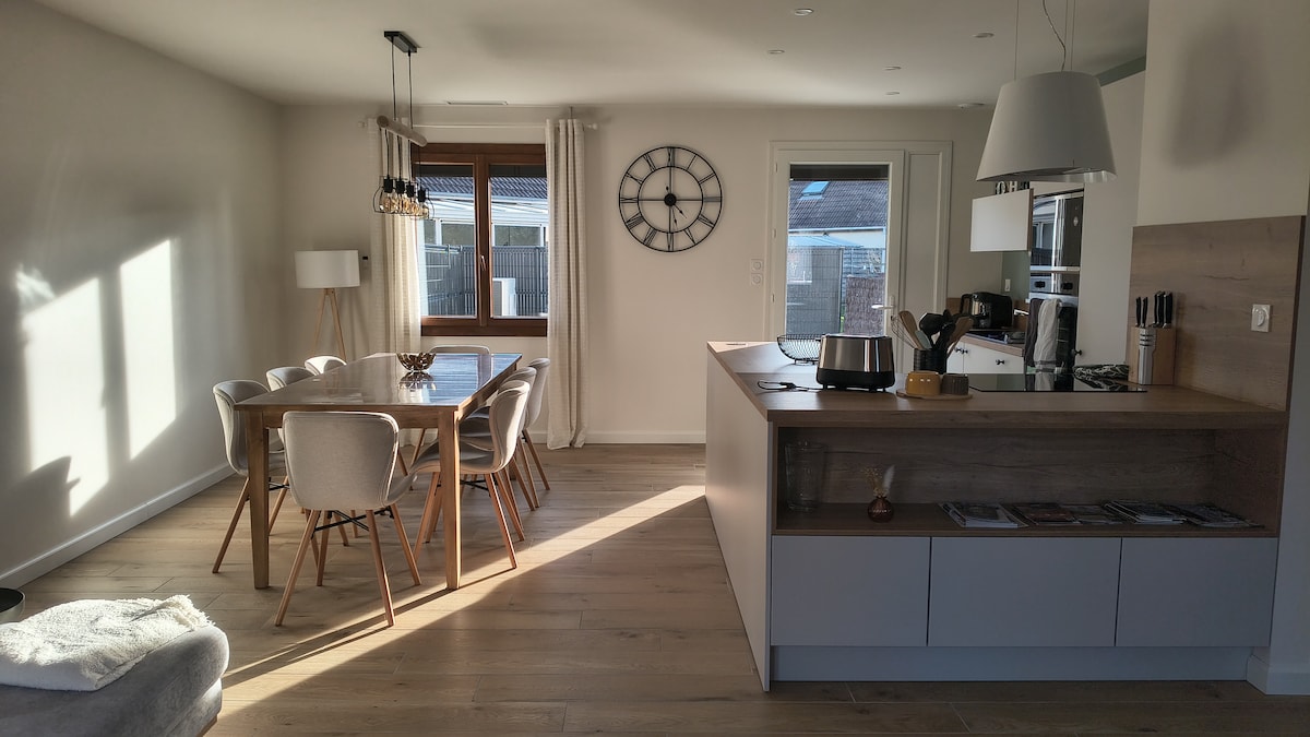 静かな住宅街では、素敵なモダンな木造家屋があなたをお待ちしています。 ロワール川からわずか500メートルです。 オルレアン市の中心部まで車で10分以内です。 4つの素敵な寝室と美しい庭園(子供と大人のためのトランポリンやその他のゲームがあります)で構成されたリビングスペースをお楽しみいただけます