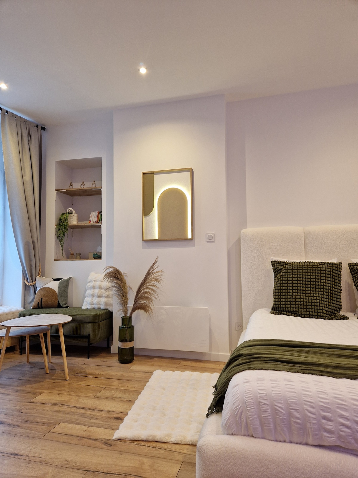 サンテティエンヌの中心部にある、バッジとインターホンで保護されたこの素晴らしい建物に滞在してください。市庁舎の路面電車から150メートル、美術工業博物館から10分。この新しく改装されたワンルームは、向かいに隣人がおらず、西向きで明るく、街の喧騒から離れています。シャワー、トイレ、ヘアドライヤー。温かみのあるインテリアです。すべてのテキスタイルが提供されます。電子レンジグリル、IHクッキングヒーター、冷蔵庫、タッシモの紅茶とコーヒーのケトル。薄型テレビ。掃除機、ファン、スチーマー。