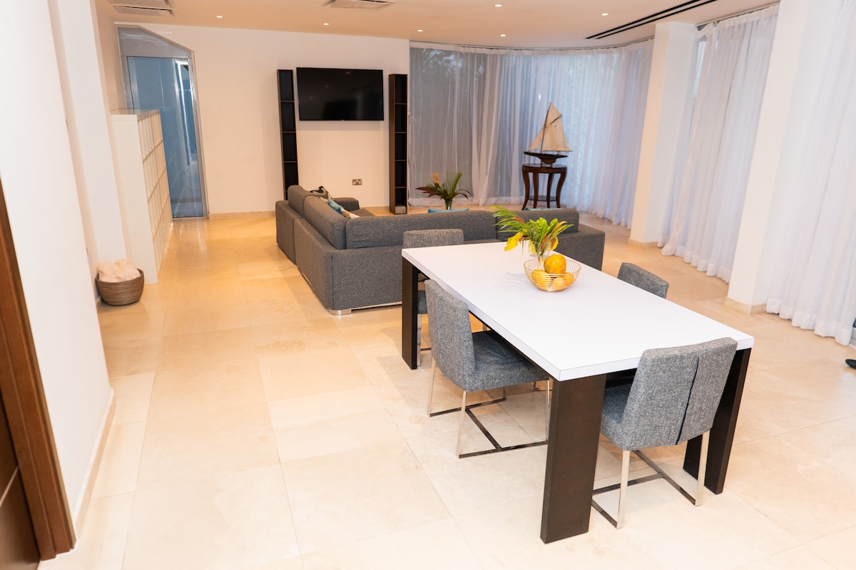 ニユンバニは、トレトップスと山の景色を見渡すスタイリッシュな3ベッドルームの家です。フレンドリーで静かなエリアにあり、グランドアンスビーチやレストラン、ショップ、バー、モールまで徒歩圏内です。カリブ海の涼しい風が吹き抜けるパティオでは、家族や友人と楽しむことも、景色を眺めながらくつろぐこともできます。すべての部屋はエンスイートで、エアコン、テレビ、エンターテイメント、キッズビデオゲームが備わっています。15分で空港に行けます。