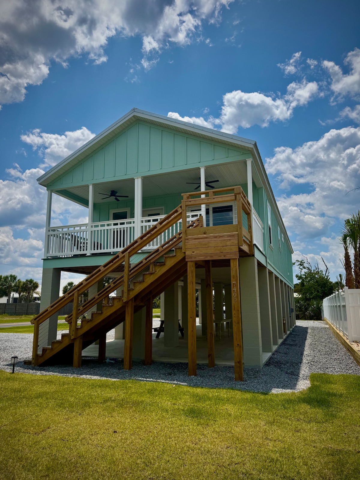 Welcome to your coastal retreat w/ gulf views, breezy decks & easy beach days just steps from the shore! Enjoy space to unwind, play & reconnect. - Sleeps 8 | 4 bedrooms | 5 beds | 2.5 baths - Private outdoor pool - (heated Oct-Mar-FEE applies) - Gulf-view decks, fire pit & fenced backyard - Beach access nearby + beach essentials - Kitchen, WiFi & 75 inch HDTV - Pet-friendly