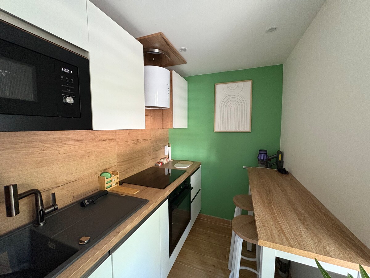 専用の囲いのある外部(テラスと30m2の庭園、リビング、デッキチェア)を備えた、完全に改装された家。 独立した入り口を備えたゲストハウス(55㎡)は、4名様までご宿泊いただけます。 リビング、設備の整ったキッチン、ドルチェ・グスト... 1階の寝室には160*200のベッド、デスク、中二階があります。 快適なリビングルームには140*190のソファベッドが備わっています。 新しいテレビ、無料Wi-Fi。 リネン類(寝具、バスタオル、フロアマット、キッチンタオル)が含まれています。 ドライヤー付きシャワールーム。 トイレは別室です。
