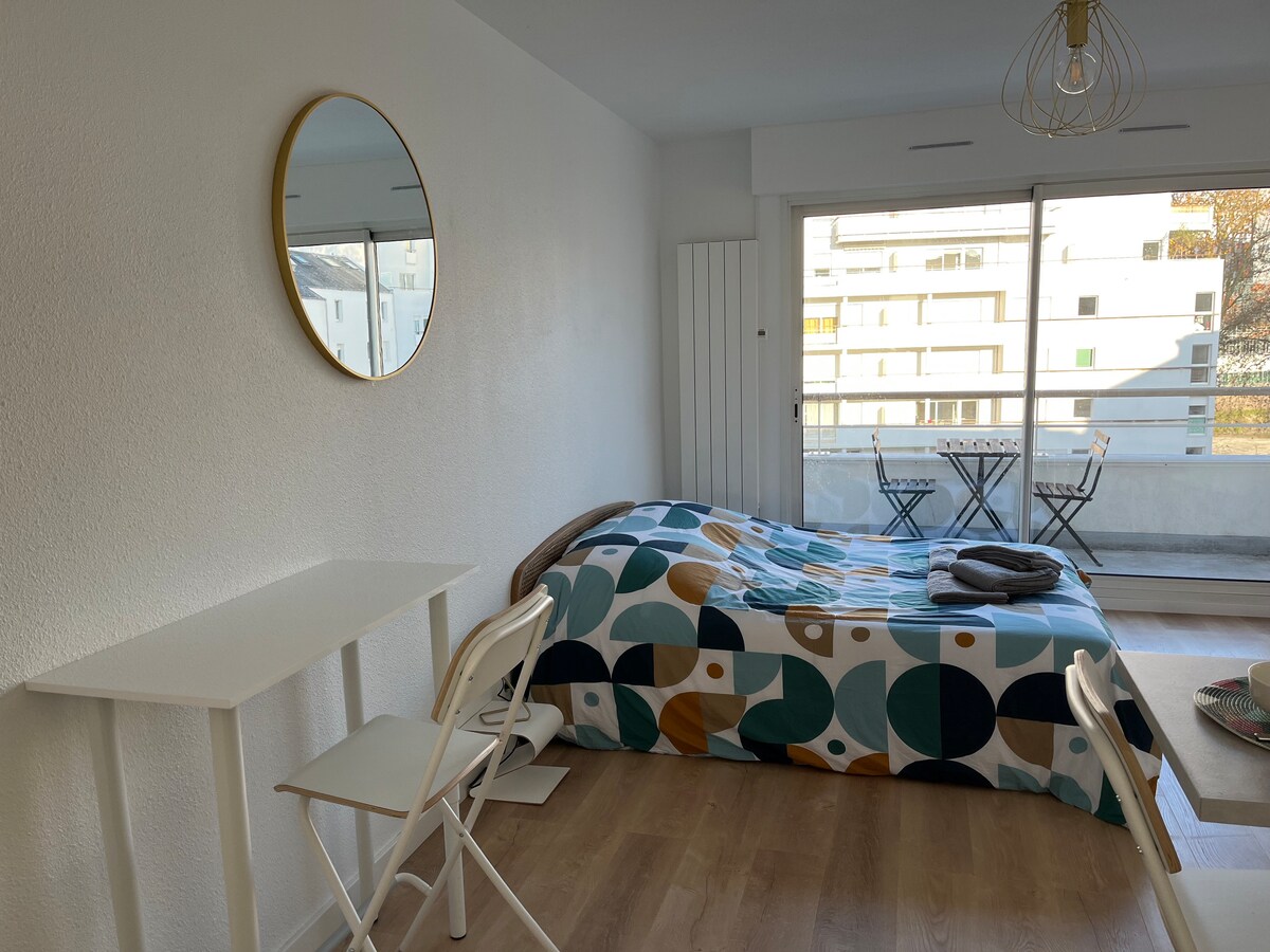 素敵で居心地の良いバルコニー付きワンルーム、Cité des Congrès gare Sud