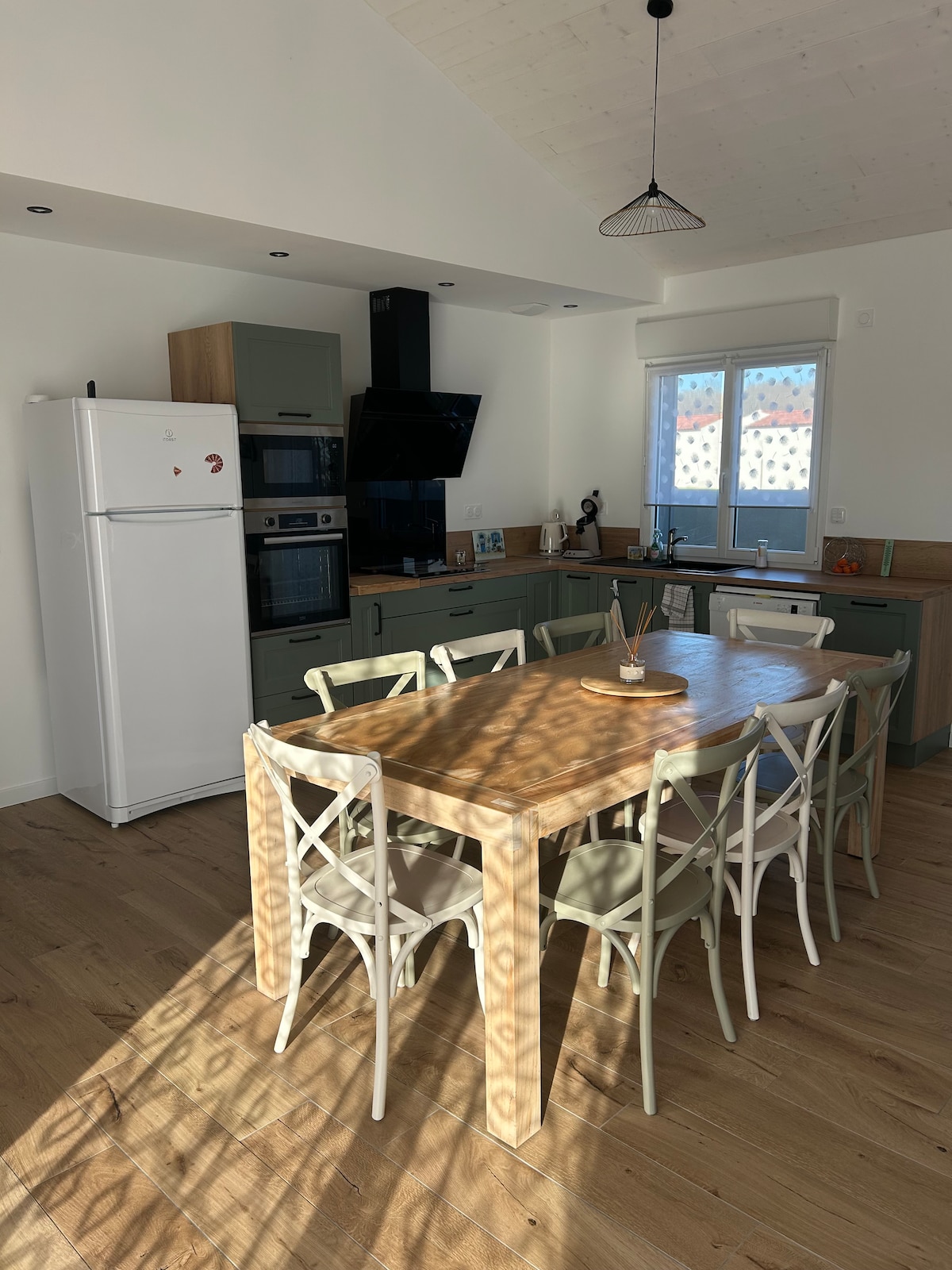 完全に新しい宿泊施設で、私たちが休暇の場所で見つけたいと思っているものを提供しています。 田舎の静けさを楽しみながら、お店や海(オレロン島から7 km)にも近いです。 キッチンとリラクゼーションエリアを備えた居心地の良いリビングスペース。 オーブン、電子レンジ、食器洗い機、洗濯機、朝食用にフィルターコーヒーメーカー、ケトル、トースター。 バスルームとトイレは分かれています。 パティオと専用庭には車1台分の駐車スペースがあり、庭にはガーデン家具とバーベキューグリルが備えられています。