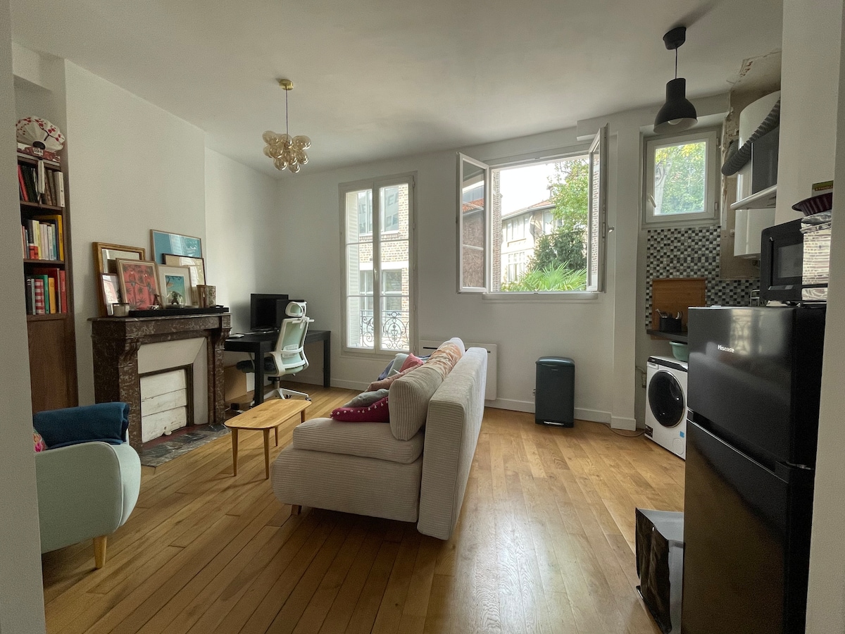素敵で広々とした1ベッドルームのアパートで、カップルや最大4名様まで宿泊可能です。ソファ2台はシングルベッド2台(80 x 180 cm )に変換でき、お子様連れに最適です。 アパートは静かな通りにあり、ビル管理人とビデオ監視で非常に安全です。 通りの静けさを楽しみながら、素敵なレストラン、徒歩3分のスーパーマーケット、美しい公園、近くにたくさんのお店があります。 パリのあらゆる観光地へ簡単に行くことができます。