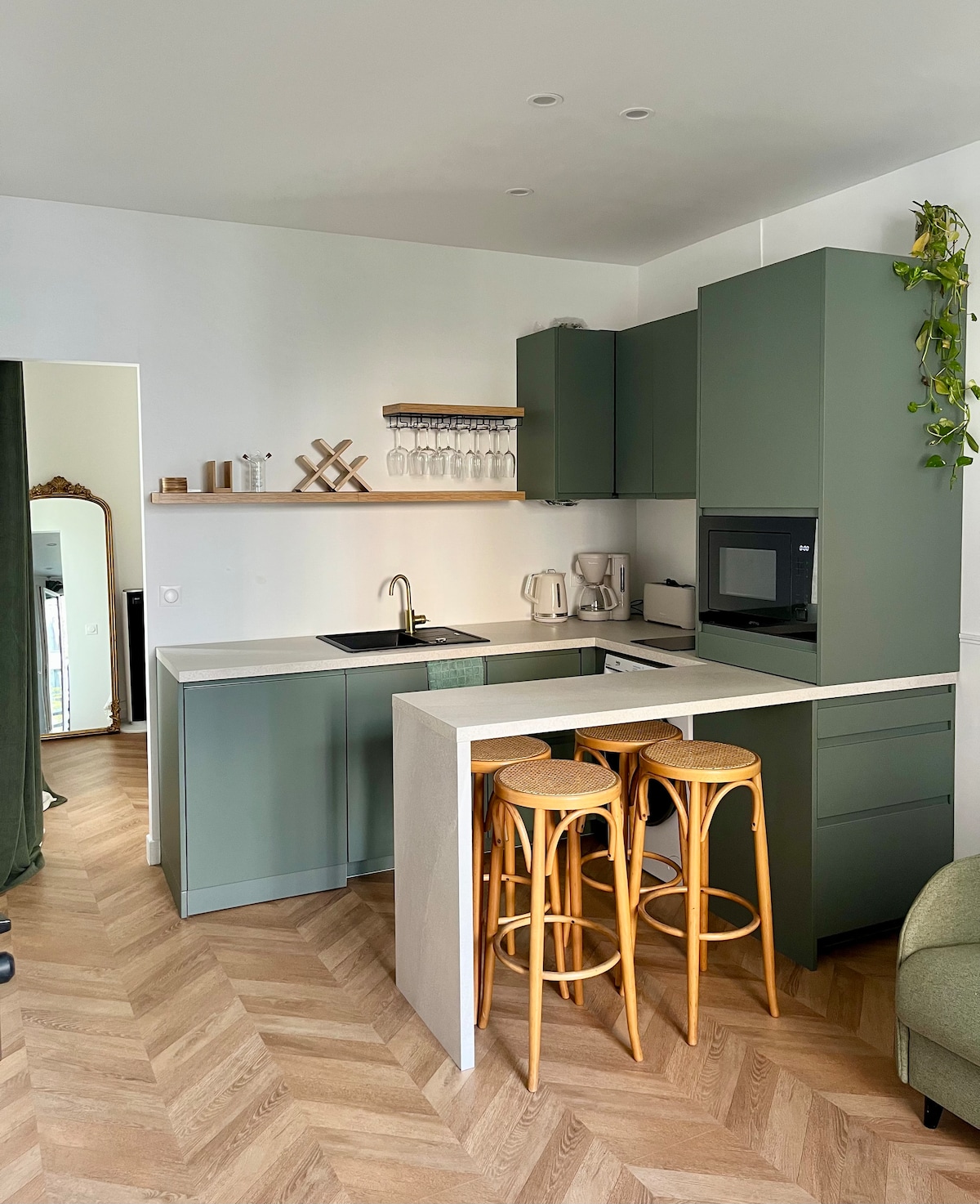 Beautiful Parisian Appartment located just 10 min walking from Paris Expo, Arena Paris Sud, and Parc Georges Brassen, and well connected to public transport. Located near metro 13 and 12, tram T3a, buses 89, 58 and 95. It is a newly renovated 26 m² apartment featuring one bedroom, a combined kitchen and living room area, one bathroom with an integrated toilet, and a terrace. Insta: @lejardindesimone_paris
