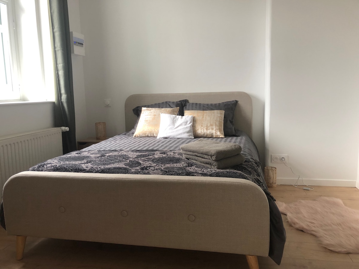 ドゥエ駅からすぐのエレガントな宿泊施設をお楽しみください。 160x200のベッド(シーツ2枚、羽毛掛け布団2枚)と140x200のソファーベッドがあります。羽毛掛け布団は4シーズン対応です。 リビングには、NetflixにアクセスできるコネクテッドTVがあります。 キッチンには、電磁コンロ、電気オーブン、電子レンジが備わっています。 雰囲気は落ち着いて暖かく、床はオーク材のフローリング、家具は木製です。 請求書はリクエストに応じて提供されます。