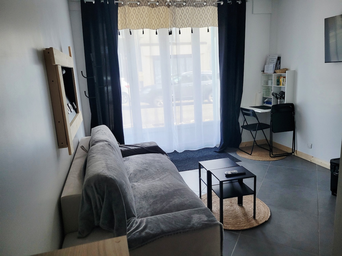 Petit Coin de Bonheur brand-new air-conditioned studio with terrace and private parking, 5 minutes from downtown. Bright, fully-equipped studio. Warm, brand-new accommodation offering all the comforts you need for a pleasant stay. Composed of : A fully equipped kitchen. A large living room with TV, internet access and wifi. A low mezzanine with a 160cm bed. Bathroom with 120cm shower and washing machine.