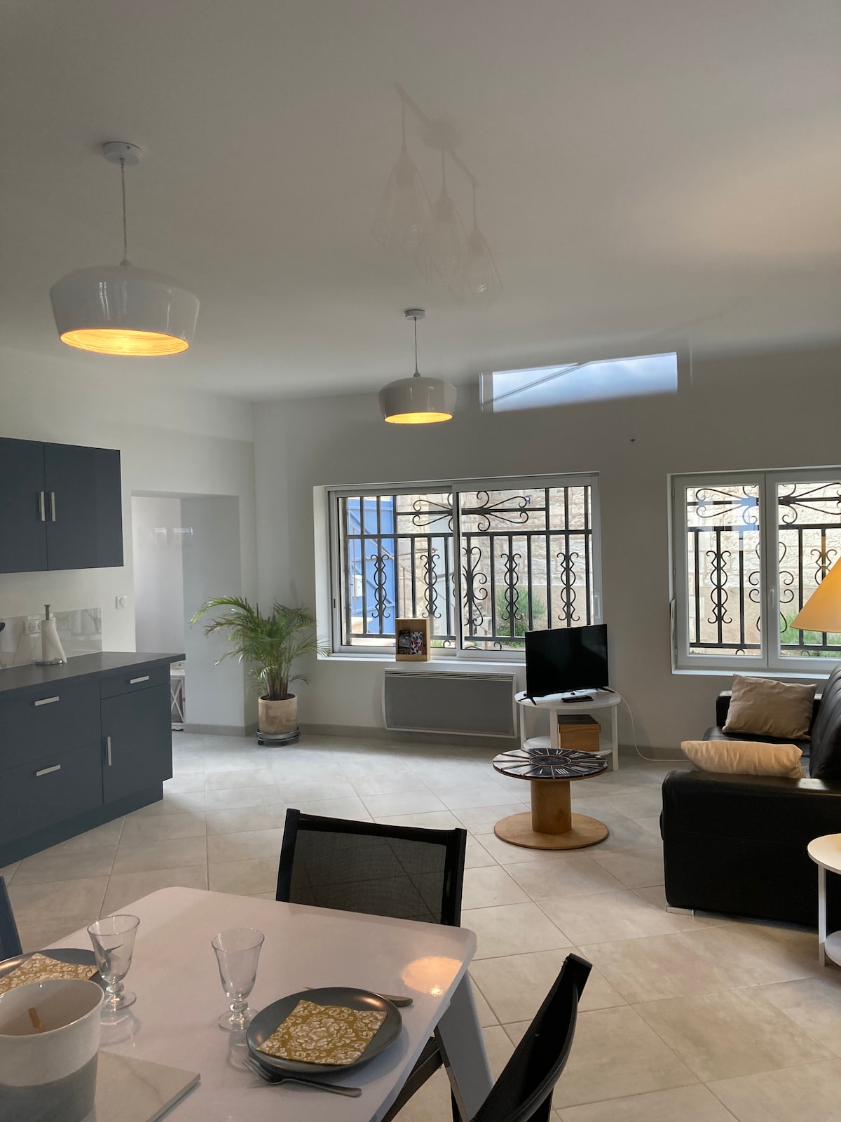 Le bien dispose d’une cuisine entièrement équipée (lave vaisselle, machine à café, grille pain, micro onde, robot de cuisine, bocaux de première nécessités). Une vaste salle à manger donnant sur le salon avec télé connectée. Trois chambres : - une suite parentale (lit, salle d’eau, dressing) - une chambre avec salle d’eau au rdc - une chambre avec deux lits simple et jouets Buanderie avec machine à laver Wifi, draps et serviettes inclus. .New : baby foot pour vos soirées.
