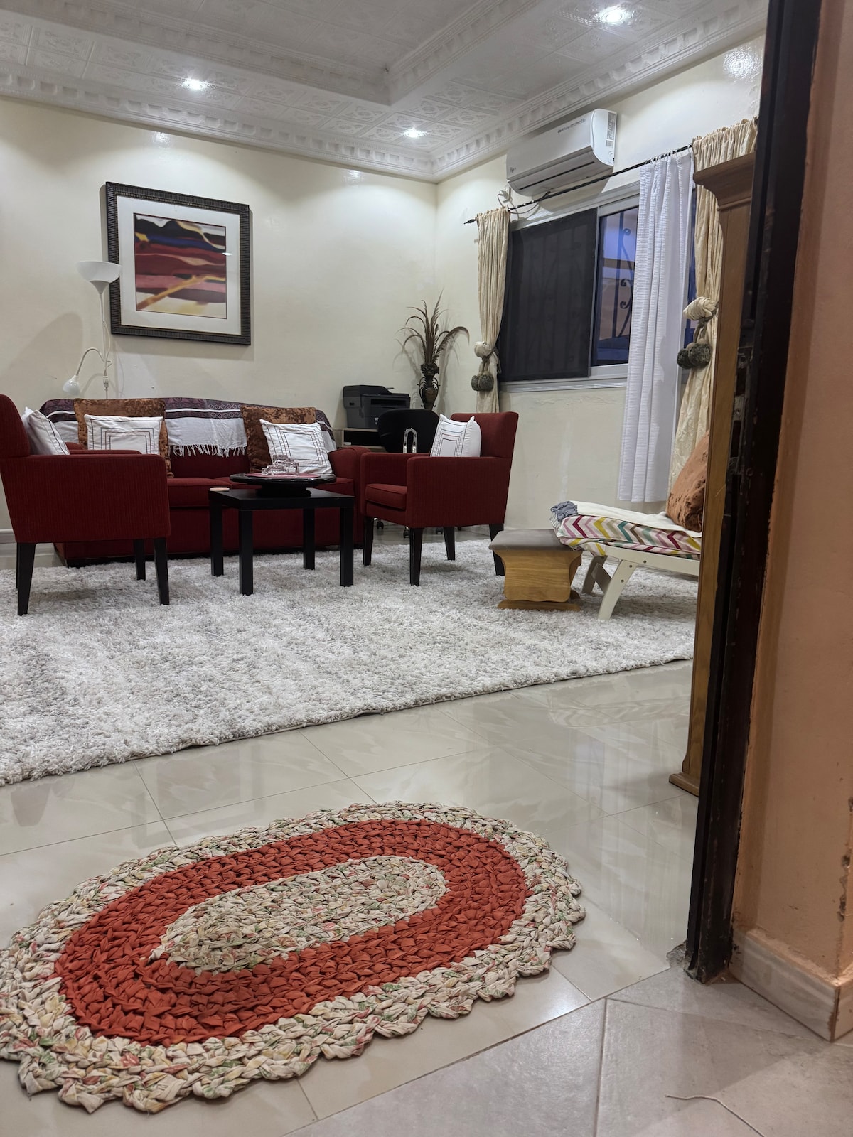VILLA F2 (STUDIO) A LOUER A SAINT-LOUIS QUARTIER NGALLELE (Zone calme, sécurisée, résidentielle et très accessible) - Surface totale : 70m2 - Place de parking devant - Grande cour avant - 1 séjour - 1 cuisine équipée ouverte - 1 toilette visiteurs(avec douche) - 1 patio - 1 chambre climatisée - 1 salle d'eau Commodités : parking, wifi, canal, femme de ménage, chauffe-eau, machine à café, pièces climatisées etc...
