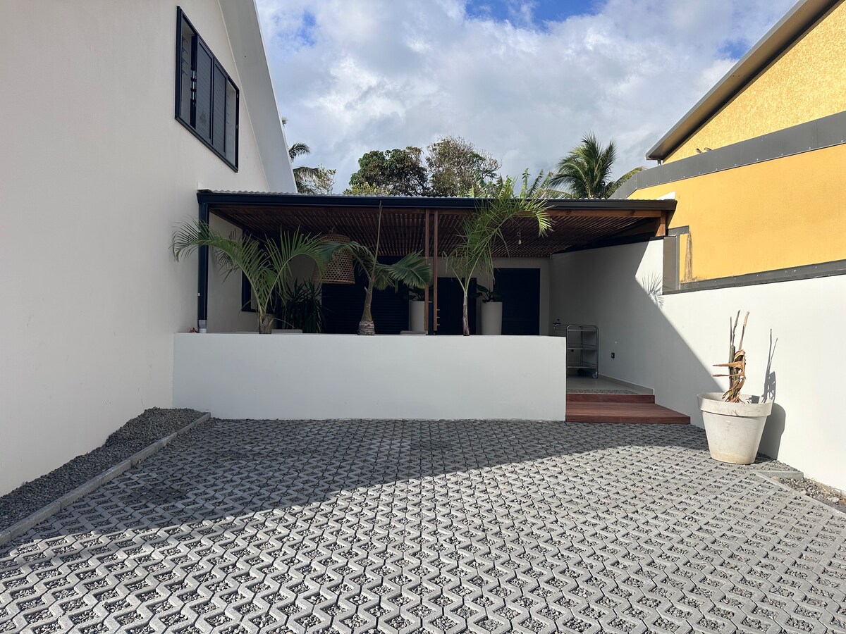 当社の家に隣接するトロピカルスタイルのシックでボヘミアンな広々としたスタジオには、独立した入り口があります。 エアコン、160cmのベッド、シャワールーム、設備の整ったキッチン、専用テラス、安全な駐車スペースを完備。 静かで緑豊かな環境にある天然石のプールにアクセスできます。 私たちのラブラドール犬は、優しくて社交的で、この場所に住んでいます。 カップルや一人でのリラックスした滞在に最適です。
