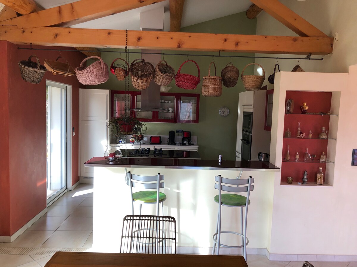 この宿泊施設は、緑豊かなプロヴァンスの農家にあります。 マスの周りには20ヘクタールの森とブドウ畑があります。宿泊施設は、キッチンが開いた広いリビングルーム、親子用のベッドルーム、メザニン、トイレ付きのバスルーム、独立したトイレで構成されています。 庭用家具を備えた大きな屋根付きテラスとバーベキューを楽しめる専用スペースをお楽しみいただけます。 プール(11m * 5m)は時間制限なしで共有です