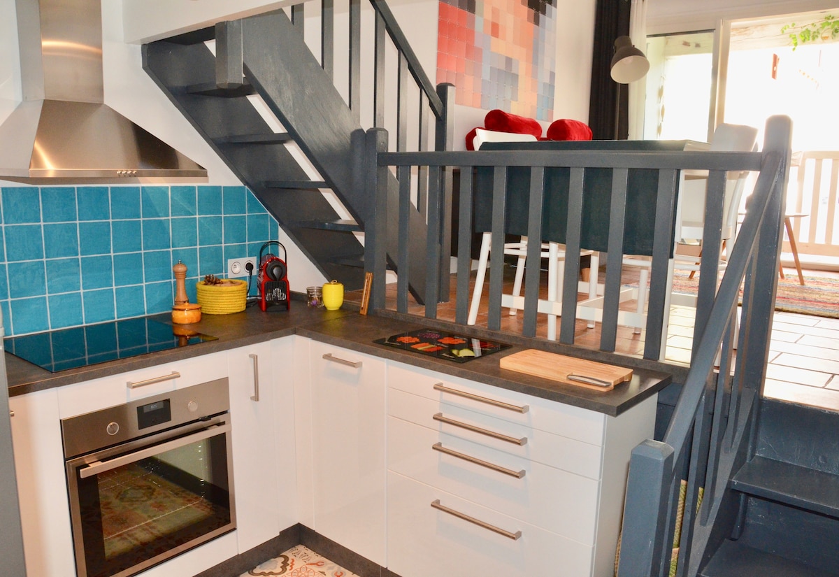 サン・マルタンの港にある個人宅で、32平方メートルの独立したエントランス付きの個室です。 2018年8月に全面改装されたこの宿泊施設は、お店のすぐ近くにあり、車を忘れて休暇を楽しむのに最適です。 中庭には自転車用の駐輪場があり、テラス側で静かにお食事ができます。