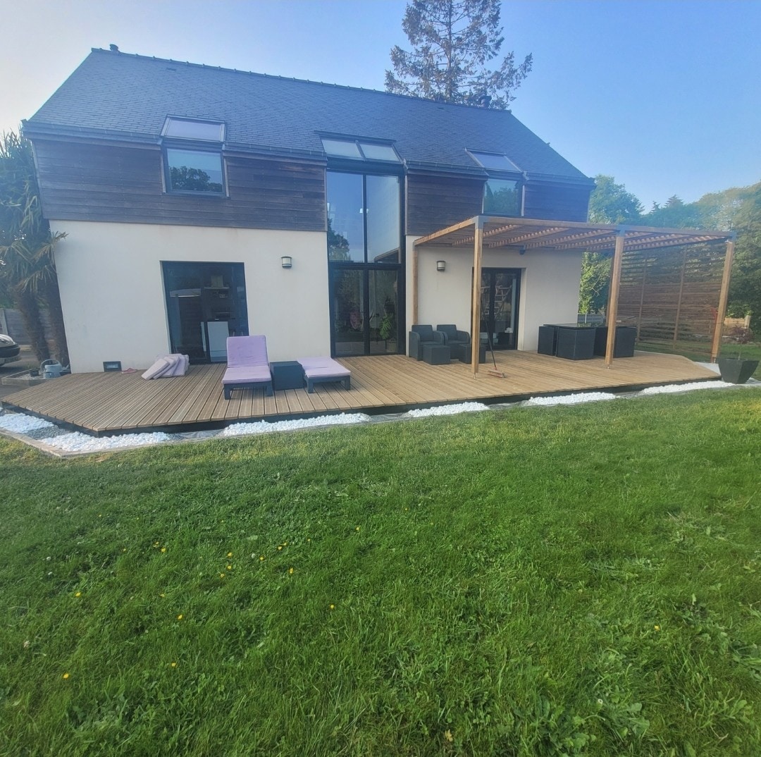 ネオとサウナ付きの高級宿泊施設 - ブリュズ、レンヌ近郊 2人用の60m²の美しい現代的な宿泊施設でリラックスしたひとときをお楽しみください 快適さを追求: • 設備の整ったモダンなキッチン • キングサイズベッド(180x200)と高級寝具を備えたスイート • バルネオ、サウナ、ウォークインシャワー付きバスルーム • スマートテレビ2台 • クローゼット付き玄関 • テラスと庭 リネン類(タオル、バスローブなど)がすべて揃っています