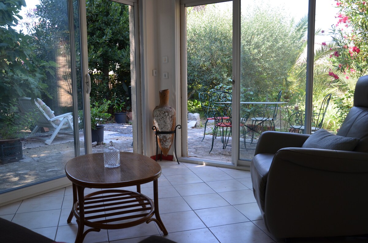 Studio 24 m2, terrasse, jardinet donnant sur piscine (7X3.5m, non sécurisée, non chauffée, partagée avec les propriétaires). Idéal pour couple. Situé dans propriété calme, exposé sud, intérieur lumineux, Hébergement Neuf, éco-responsable , confortable et fonctionnel, équipé, espaces chambre, cuisine, salle d'eau. Nombreux attraits naturels et culturels dans le secteur. Entre mer et garrigues, vos hôtes vous accueilleront avec simplicité. Commerces et services de base accessibles à pied.