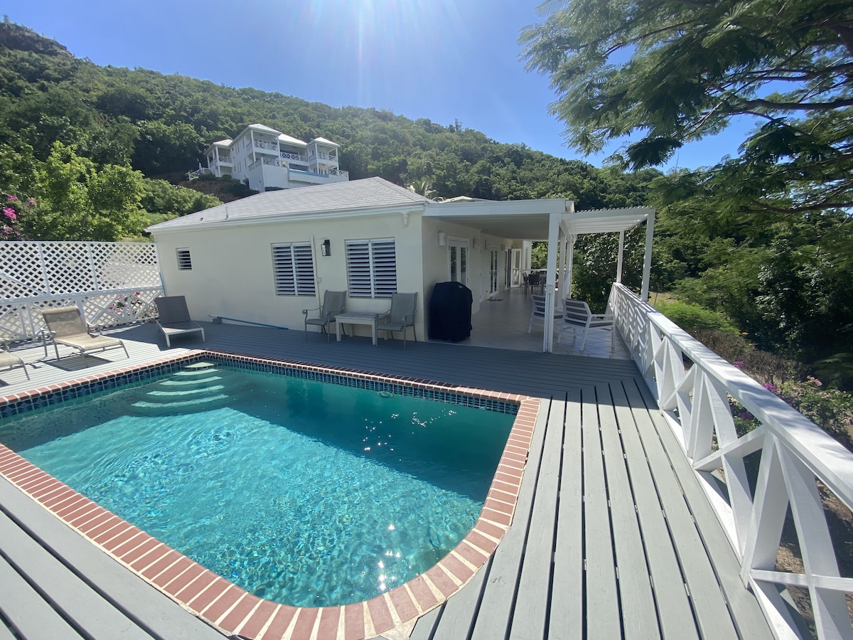 This beautifully finished property overlooks one of the loveliest harbour sites of the world. It’s position takes advantage of the trade wind breezes and spectacular panoramic views. The house with private pool is located on the slopes of Monks Hill, adjacent to the local village. It is nestled on the hillside amongst the other villas of Rose Hill. With the beaches and restaurants of Falmouth 5 minutes drive around the bay this is the perfect spot for a varied and relaxing holiday.