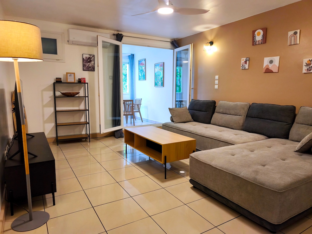 静かで安全な住宅街の中心部に🌴位置し、あらゆる施設に近い「L'Ecrin Bohème」へ🌴ようこそ。 タマランの道へのアクセスが容易で、島の北部または南部への迅速な移動が可能です。ビーチやサンポール市場まで車で10分です。 トレイルやハイキングが好きな方には、当宿泊施設はマイド(マファテ渓谷の入り口)から1時間以内の場所にあります。
