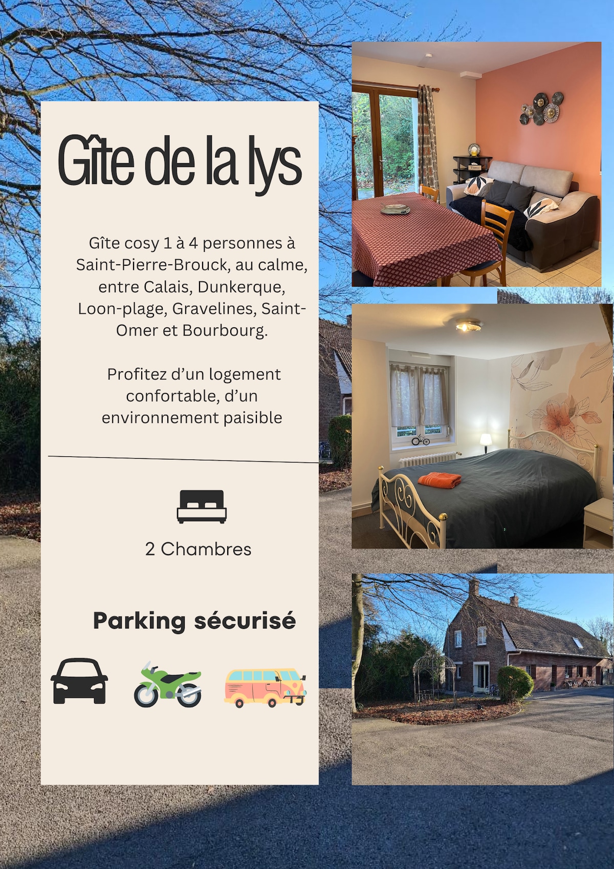 Charmante maisonnette de 50 m2 située dans une jolie propriété, au calme, dans la commune de Saint-Pierre-Brouck (à proximité de Bourbourg, Gravelines, Dunkerque, Saint-Omer, Loon-plage) disposant d'un parking sécurisé. Le logement tout confort dispose d'une cuisine entièrement équipée , d'un coin séjour/salon avec TV , d'une salle de bain avec douche. A l'étage 2 belles chambres avec couchage 140x 190 chacune. Draps fournis et lave linge à disposition.