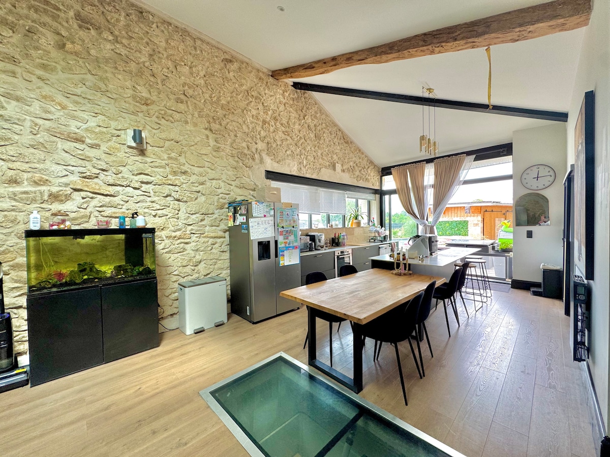ジロンド県の美しい古い村、ジェンサックの中心部に位置し、谷間の素晴らしい眺めと夕日を眺めることができる、この80m2の完全に改装されたココンで、一人で、または二人でリラックスしてください。 時代を超越した魅力、独特で手入れの行き届いた装飾、比類のない快適さに魅了されることでしょう。 最初の夜には「フランス風」の朝食が提供されます!