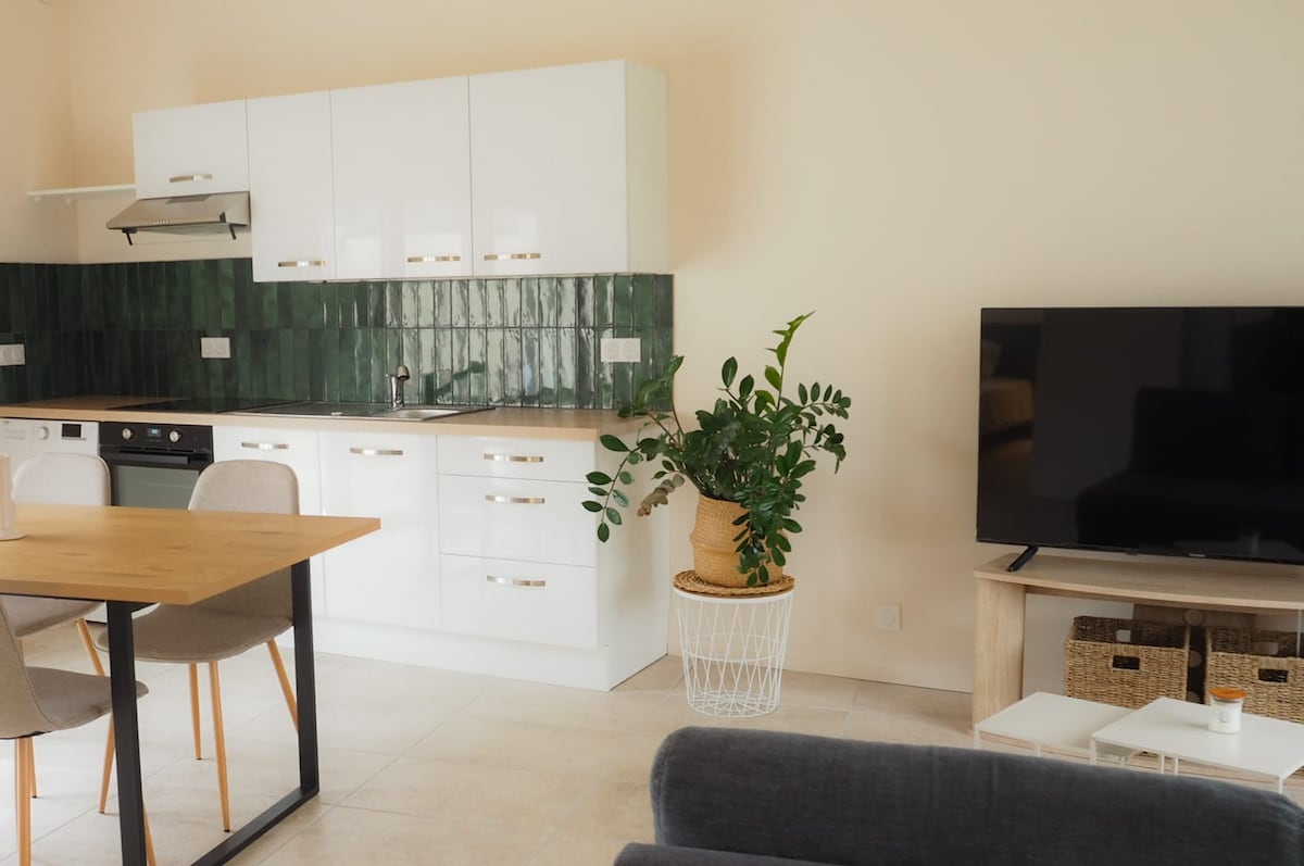 オーナーの家からすぐの25平方メートルのスタジオ。旅行者は静かでプライベートな場所に滞在できます。 キッチンコーナーはありませんが、冷蔵庫と電子レンジが利用できます。住宅街にあり、静かで安全で、自動ゲートで閉じられています。スタジオの前で車を駐車することができます。 市内中心部と大型ショッピングセンターに近いです。 短期滞在(2泊未満)の場合はリネン類は提供されません。または追加料金でご利用いただけます。Wi-Fi接続