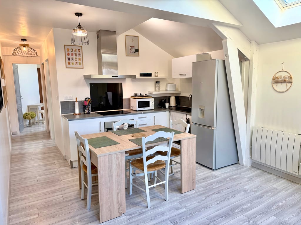 改装済みのアパートT2 65m2 +中二階+バルコニー、所有者の家の2階。 寝室5台:160cmのベッド1台、リビングルームに140cmのソファーベッド1台、中二階に90cmのベッド1台。外部階段による独立したアクセス。 専用駐車スペース(屋根付きではありません)付きで貸し出しています。ロワレの散策道への直接アクセス、自転車でのロワール川、オルレアンから車で10分。高速道路に近いにもかかわらず、アパート内では大きな騒音はありません。