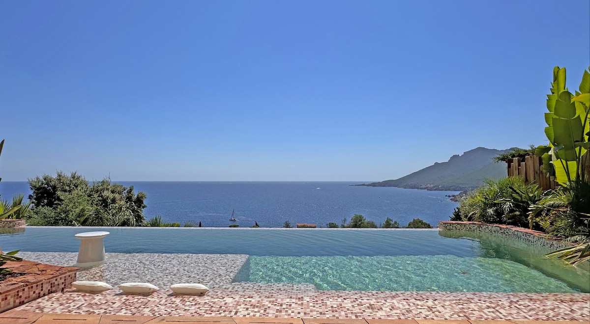 ヴィラ・SOMA、テウル・シュル・メールの海に面した静かな隠れ家、カンヌまで15分、ニース空港まで30分 5つの寝室とバスルーム、180度の海の眺望、温水インフィニティプール(オプション)、ノルディックバス(オプション)、ホームシアター、最高の快適さを提供する高品質の設備 エステレルの中心部に位置し、家族や友人との滞在に最適 ビーチと港まで徒歩圏内 シーツ、タオル、洗面用品が含まれています コンシェルジュサービス:シェフ、マッサージ、ボートレンタルなど