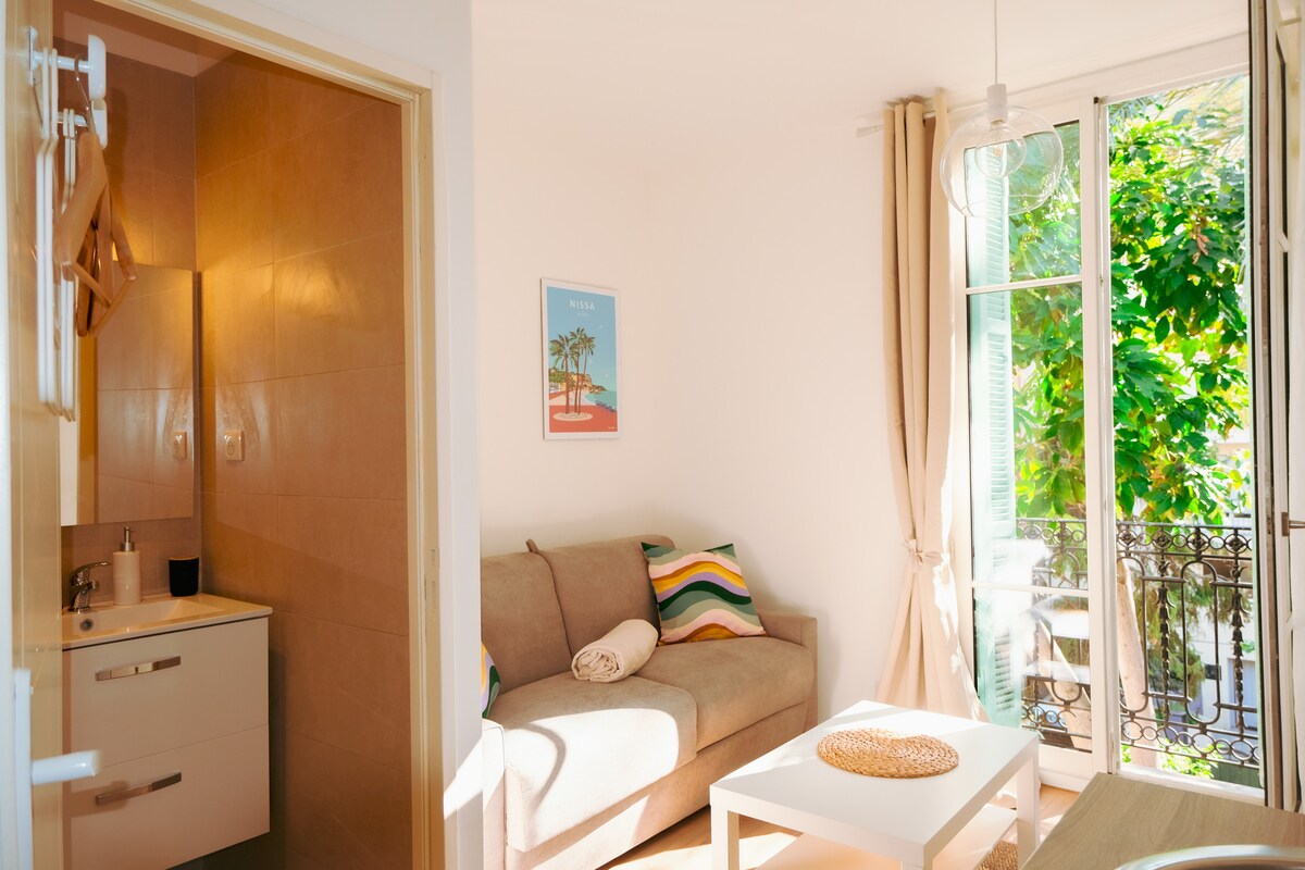 Newly refurbished studio apartment in a historic and traditional Nice building built in 1834 where the famous French artist Henri Matisse lived and painted several masterpieces such as The Bay of Nice in 1918. Fantastic panoramic sea view from the balcony. Beau Rivage beach and lounge on your doorstep. Just a few minutes walk to the city heart, the old town (great at day and night), many restaurants and shopping areas. Cozy and luminous as the apartment is facing South. 32 m2 room (344ft2)