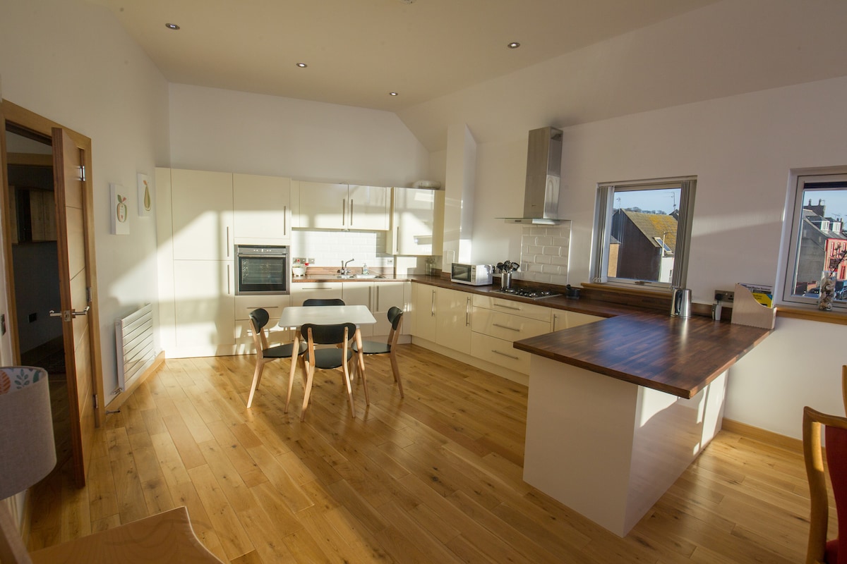 ビクトリアパークと崖の隣の海辺近くのモダンなアパート。ハイストリート、ショップ、レストラン、バス、電車駅、海から徒歩5分の中心部の静かなロケーションです。海の眺めはありません。フラットにはダブルベッドルームが1部屋と大きな拡張可能なソファベッドがあります。無料の専用駐車場をご利用いただけます。エスプレッソコーヒーマシン、フレンチプレス、乾燥機、洗濯機、冷蔵庫/冷凍庫を完備したキッチン。ファイバーWi-Fiとワーキングデスク。ゲスト全員様用のコーヒーとお茶。 ユニークなライセンス番号AN -01148 - F