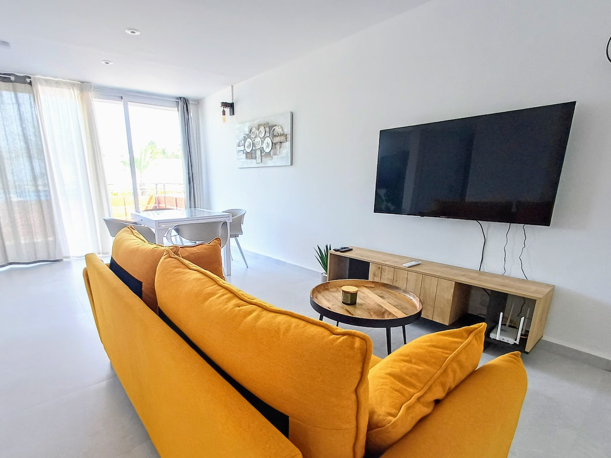 Appartement de 50 m² entièrement refait à neuf dans une ambiance cosy afin de vous offrir tout le confort nécessaire pour d'agréables vacances. Il est situé au 1er étage d’un petit immeuble sécurisé, en plein cœur de Sainte Anne. A votre disposition : - 1 salon/chambre climatisé avec un lit double - 1 salle d'eau avec WC séparés - 1 cuisine équipée ouverte sur le salon - 1 véranda sans vis-à-vis avec son petit coin détente