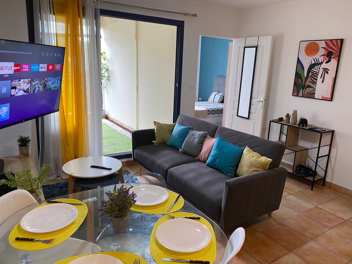 近くの都会の生活を忘れさせる大きな庭のあるヴィラに隣接しているこのT1は、すべての設備が整っているので実用的で居心地が良いです。 北と東の間、デュパルク・サント・マリーの中心部に位置するこの宿泊施設は、空港、大型ショッピングコンプレックス(映画館、レストランなど)から車で2分(徒歩10分)で、東部(ボーフ・バスン、ロッシュ川、サラジーなど)とサン・ドニ(グランマルシェ、モスクなど)の最も美しい観光スポットに近いです。