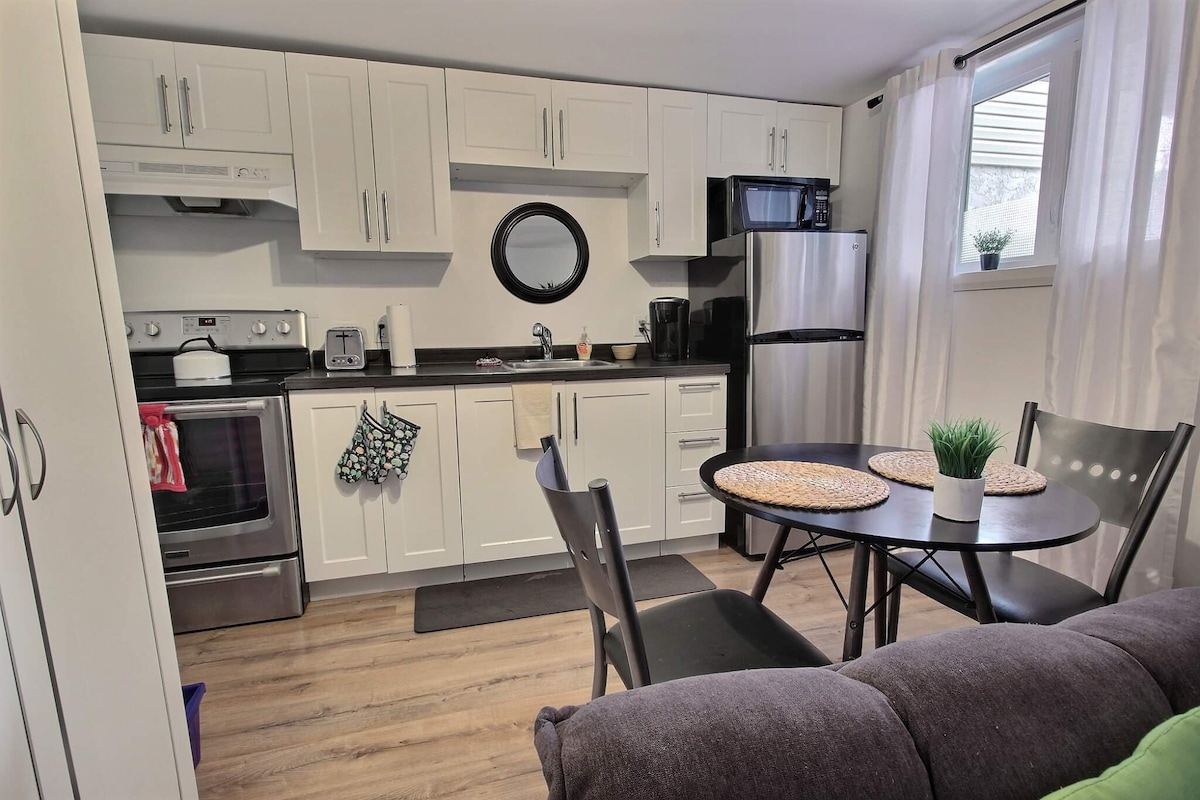 地下1/2階にある3 1/2のアパートメントで、専用玄関、標準車の駐車場(冬季のみ必要)、独立した寝室があります。市内中心部とオシスコ湖周辺の自転車専用道路から徒歩5分の理想的なロケーション。設備の整ったキッチン、高速Wi-Fi、バスルームには洗面用具と洗濯物が備わっています。コンビニは徒歩1分です。お困りの場合は布団と寝具をご用意しております。皆様のお越しをお待ちしております!