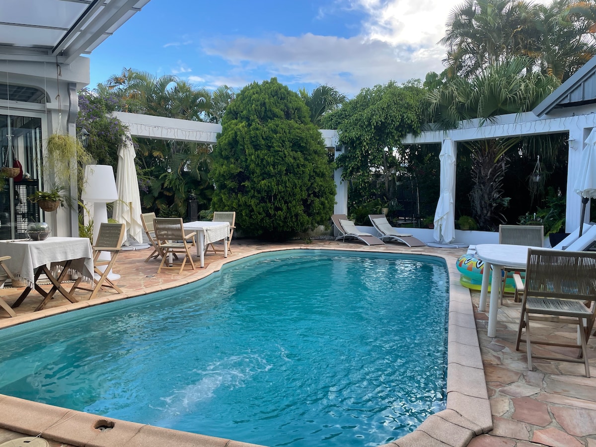 洗練された装飾の高級ワンルーム、快適な設備、プール付きヴィラの庭の1階に位置しています。美しい庭園、サトウキビ畑、海の景色を望む大きなテラスには、ダイニングエリアとラウンジチェアが備わっています。 独立したアクセス。空港から7分の場所に位置し、近くにはいくつかの観光スポットがあります(ラ・ヴァニレライ、ラファール、ブワ・ルージュの砂糖工場、ナイアガラの滝、多くのプールなど)。 北部、サラジーサーカス、東海岸を訪れるのに理想的なロケーションです。