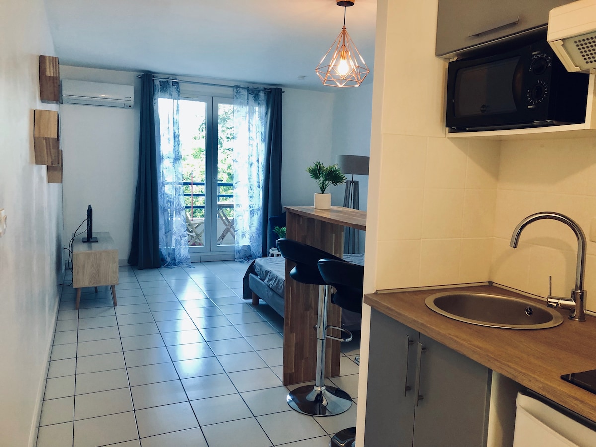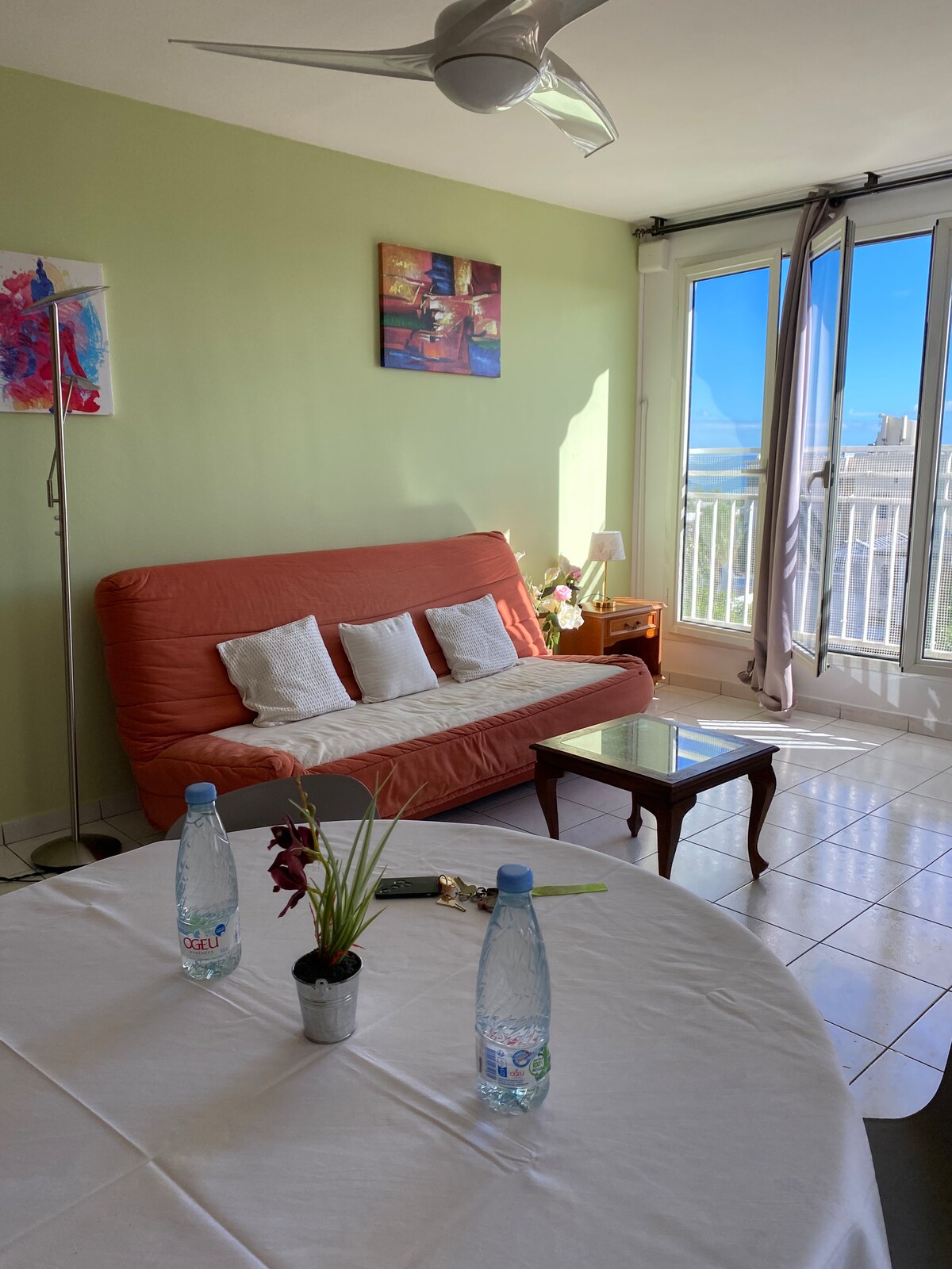 35m²の広いワンルームマンション、8m²のバランガ(テラス)付き、個人宅です。 エレベーター付き5階 インド洋の素晴らしい眺め レジデンスのプールへのアクセス 専用駐車場 WiFi 禁煙。ペット不可 玄関、居間、キッチン、シャワールーム 洗濯機、冷蔵庫、電子レンジ エアコン スーパーマーケットLECLERC 300m 空港から車で15分 市内中心部から徒歩15分 公共交通機関。 割引料金: 7泊以上で10%割引。 28泊以上の場合は25%割引。