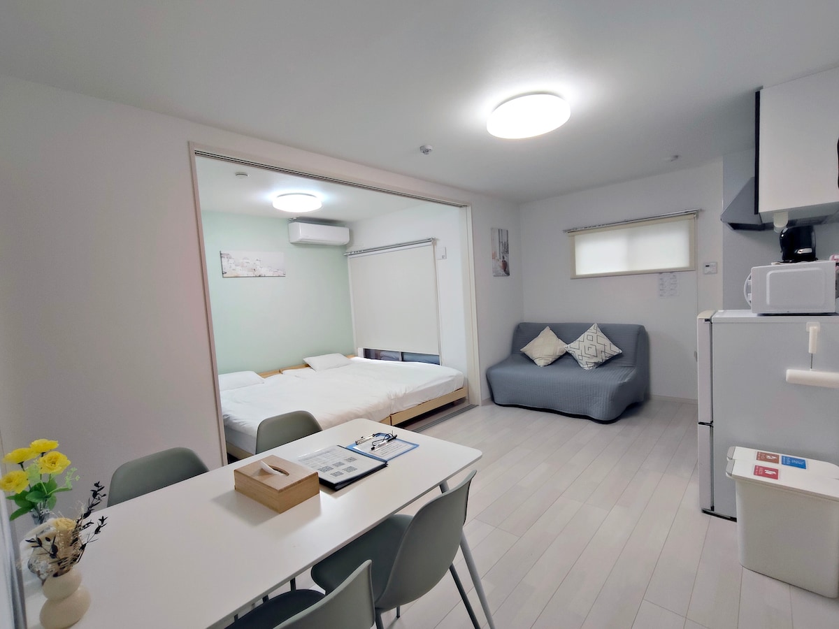 大阪・今宮周辺に位置する民宿で、立地が良く生活にも大変便利です。JR今宮駅まで徒歩4分、難波・心斎橋・通天閣・新世界などの人気観光地へも電車で数駅と、⼤阪を自由に観光したい方に最適です。周辺にはコンビニ、スーパー、飲食店、ローカルな食べ歩きスポットが揃い、大阪らしい雰囲気をお楽しみいただけます。 お部屋は和モダンデザインで、カップル・ご家族・ご友人同士のご宿泊におすすめです。キッチン、簡単な調理器具、電子レンジ、洗濯機、バルコニーを備えており、旅先でもご自宅のように快適にお過ごしいただけます。清潔で広々とした客室と、洗濯物干しや休憩に便利なバルコニーは、中長期滞在にも適しています。 当施設では、静かで安全、快適な宿泊環境の提供を心がけております。ご到着前には詳しいセルフチェックインのご案内をお送りし、事前にご連絡いただければご要望に沿ったお部屋をご案内いたします。短期滞在はもちろん、大阪の魅力をじっくり楽しみたい方にもコストパフォーマンスの高い宿です。