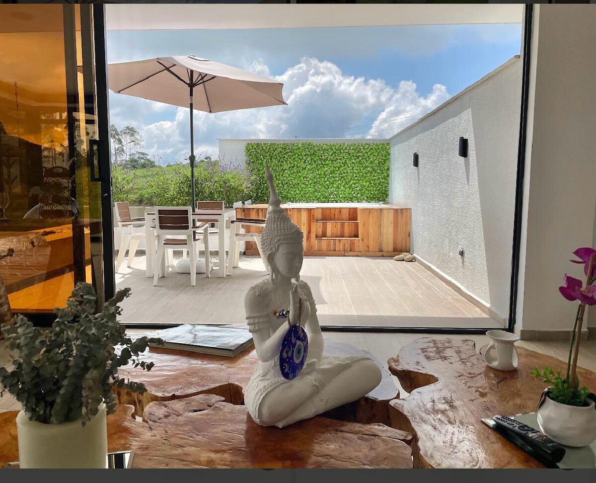Casa Chica Duarteでは、自然の魅力に満ちた休暇をお楽しみいただけます。キンディオの人気観光スポットからわずか数分の場所にあるこのインダストリアルスタイルの家は、リラックスした快適な時間を過ごし、自然との深いつながりを求める方に最適な場所です。 居心地の良いバーベキューエリアから、周囲の景色が主役の暖炉付きの交流スペースに移動することを想像してみてください。その先には、静かな中庭があり、そこから完全な休息のために設計された寝室につながっています。 お迎えできるのが楽しみです!