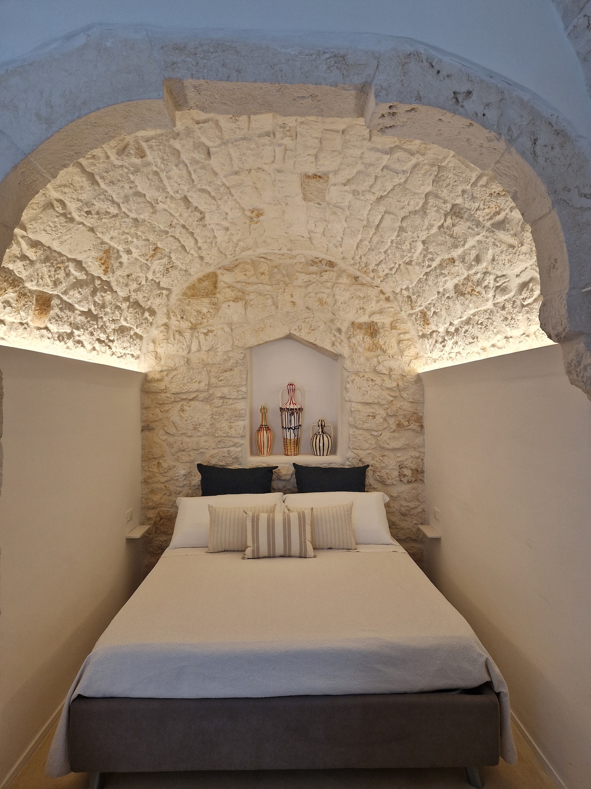 You’ll love this place for its true simplicity: trulli surrounded by the Apulian countryside, a private heated pool, and the quiet that invites you to slow down. Every piece of furniture was chosen with care from local markets. Here, light shifts gently, the air feels still and clear, and hospitality is discreet, sincere, and thoughtful. Just a few minutes from Masseria Paradiso, it shares the same spirit of harmony and attention. A genuine retreat in the heart of Puglia.