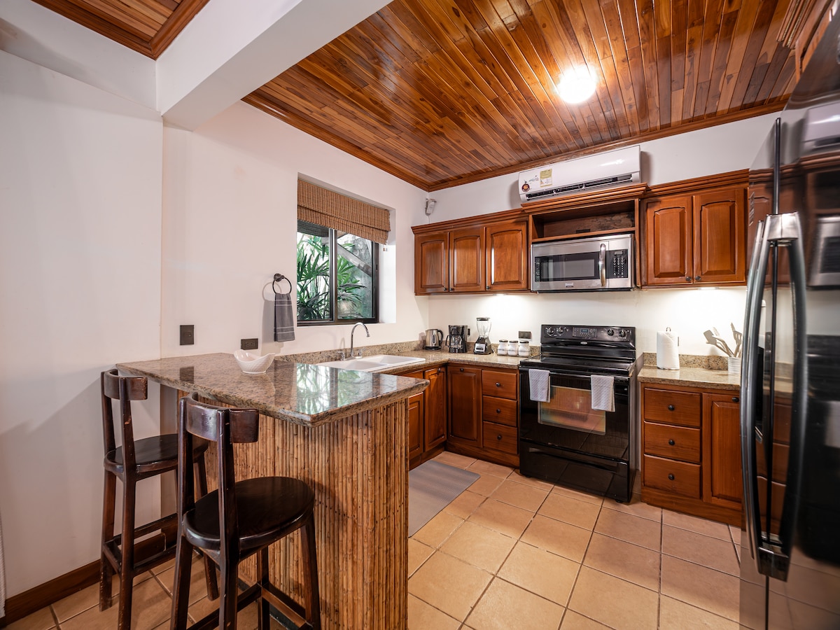 完全に改装され、家具が揃った居心地のよいアパートメント。美しいカリージョビーチからわずか4kmの距離にあります。設備の整ったキッチンからは、エアコン完備の広々としたリビングルーム、寝室、バスルームにアクセスできます。アパート、テラス、インフィニティプールからは、ジャングルと海の息をのむような景色が一望できます。 鳥のさえずりに癒やされ、コスタリカの自然や猿、蝶を眺めながら、リフレッシュするのに最適な場所です。