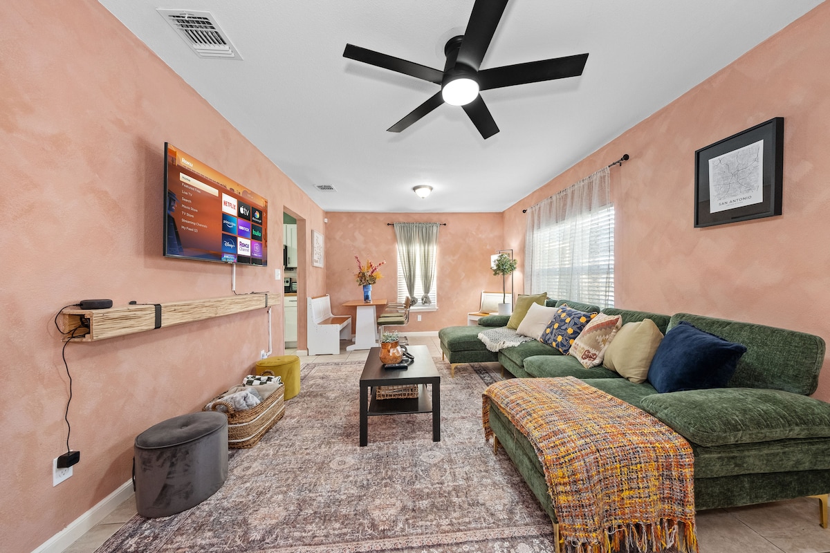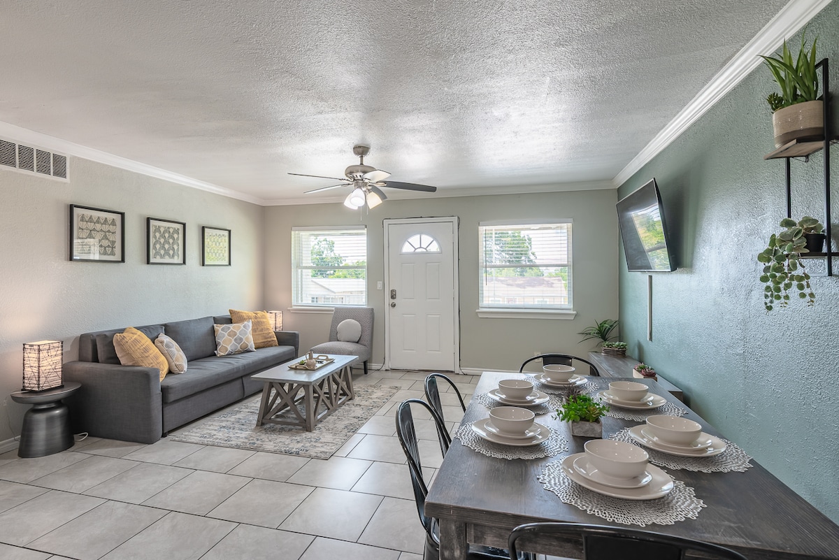 2021年に建てられた美しい家!地元のインテリアデザイナーが「ミッドセンチュリー・フェイスタ」と呼んでいるスタイルの家具。 この宿泊施設には、寝室3室、バスルーム2.5室、リビングルーム2室、美しい3階建てパティオがあります。 Mahncke Parkは、DTからすぐのアラモハイツの隣にあり、多くのアトラクションがあなたを待っています。 パール地区、アラモ、有名なリバーウォーク、植物園、多くの博物館があります。設備の充実したキッチン、2台のスマートテレビ、Wi - Fi、キーレスエントリー、駐車場。