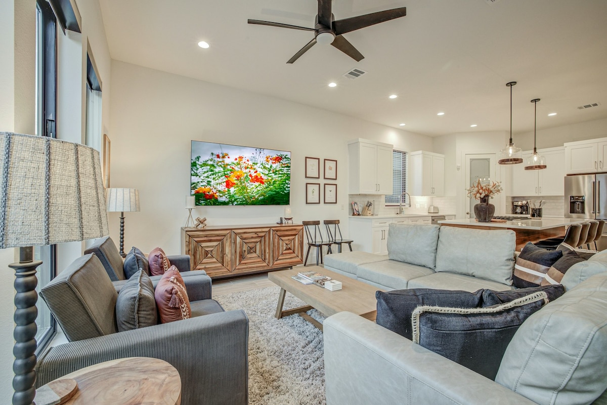 最近建てられたこの2ベッドルーム、2バスルームのサンアントニオのバケーションレンタルは、家族や友人とリラックスできる完璧なホームベースです!この家には、無料のレベル2 EV(CCS)充電、3台のスマートテレビ、設備の整ったキッチンがあります。 デッキからコーヒーを飲み、湖とプルメリアガーデンの景色を楽しんでください。 ショッピングや観光に出かける前に、地元のトレイルでハイキングを楽しみましょう。 注:この物件は2階にあり、アクセスするには階段が必要です。