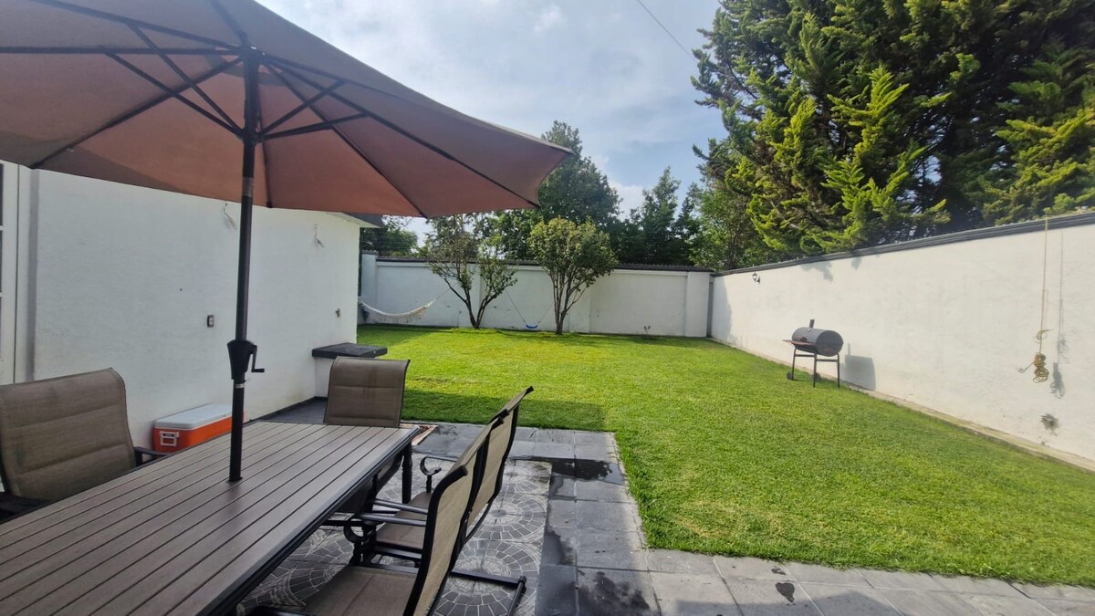 木々と緑地に囲まれたプライベートな住宅地にある家で、静けさと快適さを求める家族連れや団体に最適です。 中程度の広さのスペース、ベッド3台、ソファベッド、簡易ベッド、さらに散歩や運動のための共用エリアがあります。 メキシコシティのサンタフェから50分、メテペック、イスタパン・デ・ラ・サル、マリナルコ、テナンサンゴなどの魔法の村を訪れるのに最適なロケーションです。 近くに店舗があり、静かな雰囲気の安全なエリアです。