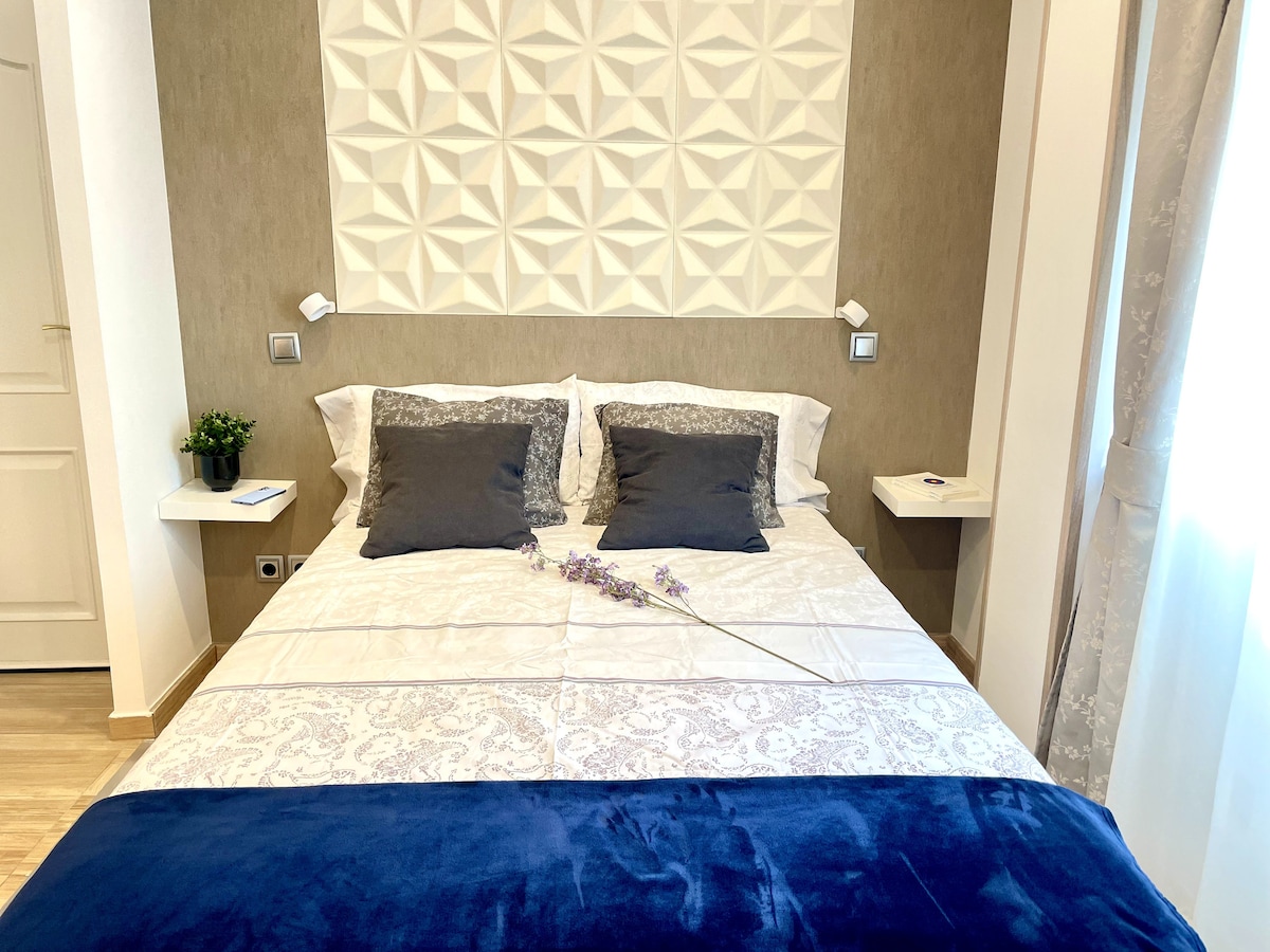 最近改装された約60平方メートルの住宅で、快適な滞在に最適です。キングサイズベッド(幅180cm)、エアコン、暖房、光ファイバーインターネット、Netflix、32インチテレビ、洗濯機、乾燥機を備えています。寝具、タオル、調理器具が含まれています。市内中心部へのアクセスに最適:地下鉄(L1、L6)、電車(メンデス・アルバロ駅)、南バス駅。M-30を通って車で簡単にアクセスでき、無料駐車場が路上にあります。スーパーマーケットの向かいにあり、商業地区に位置しています。