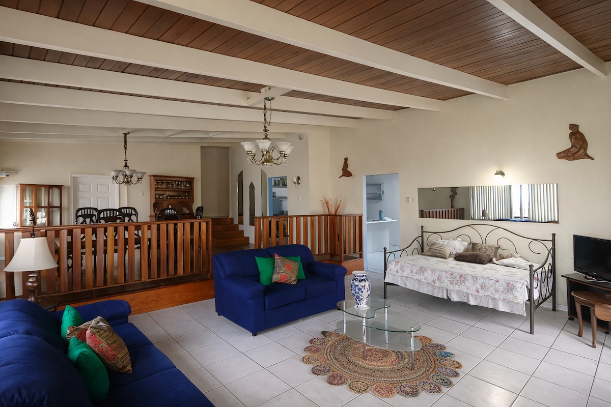 ここに宿泊する理由トップ10: 1.防犯・監視カメラとゲートを備えたゲート付きの敷地 2. 専用の入り口 3.敷地内駐車場 4. 専用のバスルーム 5. WFHスペース、テレビ、Wi-Fiアクセス 6.静かなエリア 7.空港から20 ~ 30分 8.チャグアナス、人気のモール、ナイトライフスポット、セントラルトリニダードのレストランから10 ~15分 9.セントラル・トリニダードとサウス・トリニダードの国立スポーツ施設に近接 10.主要道路まで徒歩圏内、主要高速道路の近く