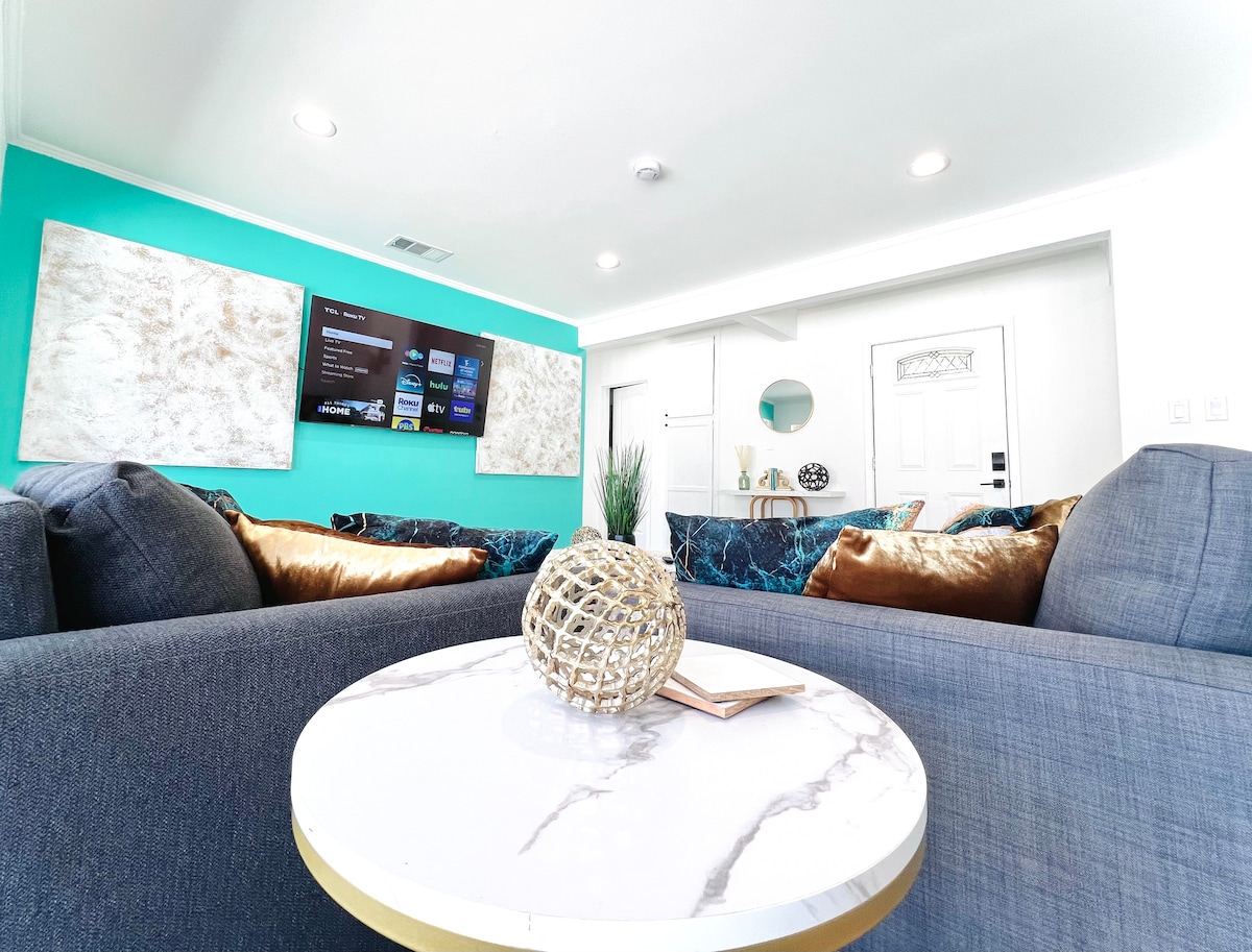 シンプルでスタイリッシュ、快適に! 真新しい55インチスクリーン、高速インターネット、中心部に位置しています。 家族連れ&ペット連れ歓迎。 *家の半分がプライベート、暖房/エアコンユニット2台、専用バスルーム、リビングルーム、共有物件内の専用KCHN。 無料コーヒー、基本的な調理器具、前面にあるパティオとゲート付き駐車場 美しいウォークインタイプのマーモル風のバスルーム、モダンなシャワーヘッド、Bluetoothで自分を甘やかしましょう 「ロサンゼルスライフ」を体験しましょう。フードトラック、屋台グルメ、スナックドライブは通りにあります。または徒歩2 ~5分です。