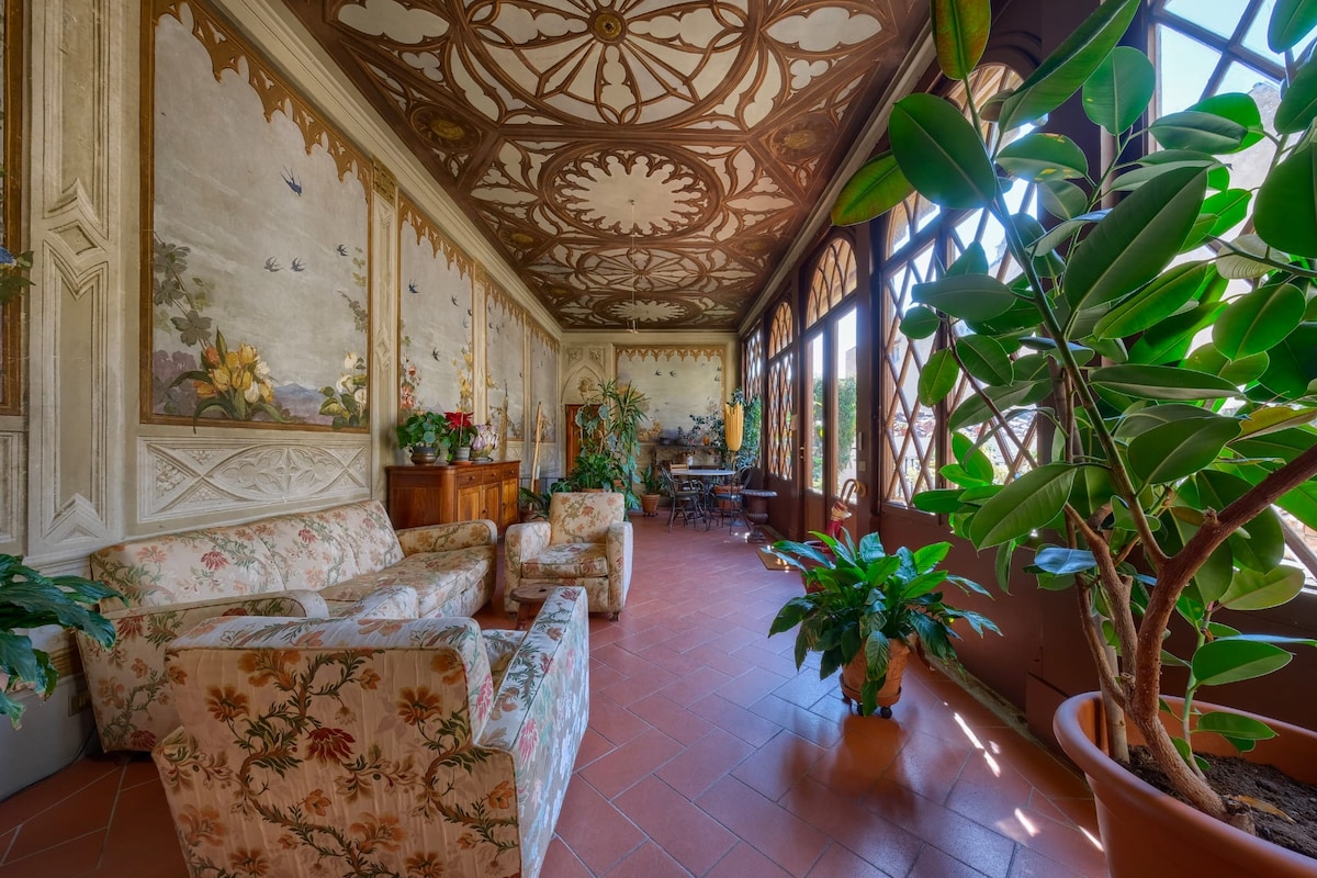 Browse traditional artisan shops, then retreat to the modern, stylish etno-chic apartment to freshen up in the industrial-chic shower. Afterward, unwind with a laid-back aperitivo on one of the two terraces in this sun-filled oasis, located in a historic Florentine building overlooking the grand Boboli Gardens. The elegant building is designed around peaceful inner courtyards, offering a tranquil escape from the street and the crowds.