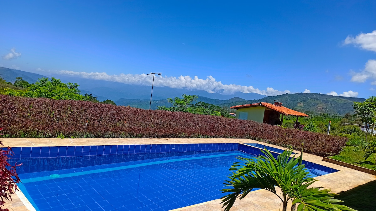 コロンビアで最も美しい町の中心にある、家族で数日から数週間を過ごすための広々とした静かな場所です。鳥のさえずりとともに、この地域の並外れた気候に包まれてリラックスしましょう。戦略的な場所にあり、静かな小道に囲まれているので、散歩、ジョギング、サイクリングができます。屋外シャワーは忘れられない経験となるでしょう。水泳をしたり、ハンモックに揺られながら本を読んだりして、時間がゆっくりと過ぎるのを感じてみてください。