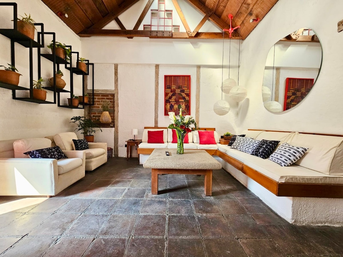 Vive la experiencia de hospedarte en el corazón de La Antigua Guatemala. A solo unas cuadras del parque, recorre estas mágicas calles a pie. Con muchos restaurantes, bares y atrcciones a solamente unos pasos pero lo suficiente como para mantenernos privados del ruido nocturno. Es un espacio acogedor diseñado para 2 personas, con todo lo necesario para estadías largas y cortas en un vecindario precioso y súper seguro. No contamos con parqueo privado y debes de subir unas gradas al llegar.