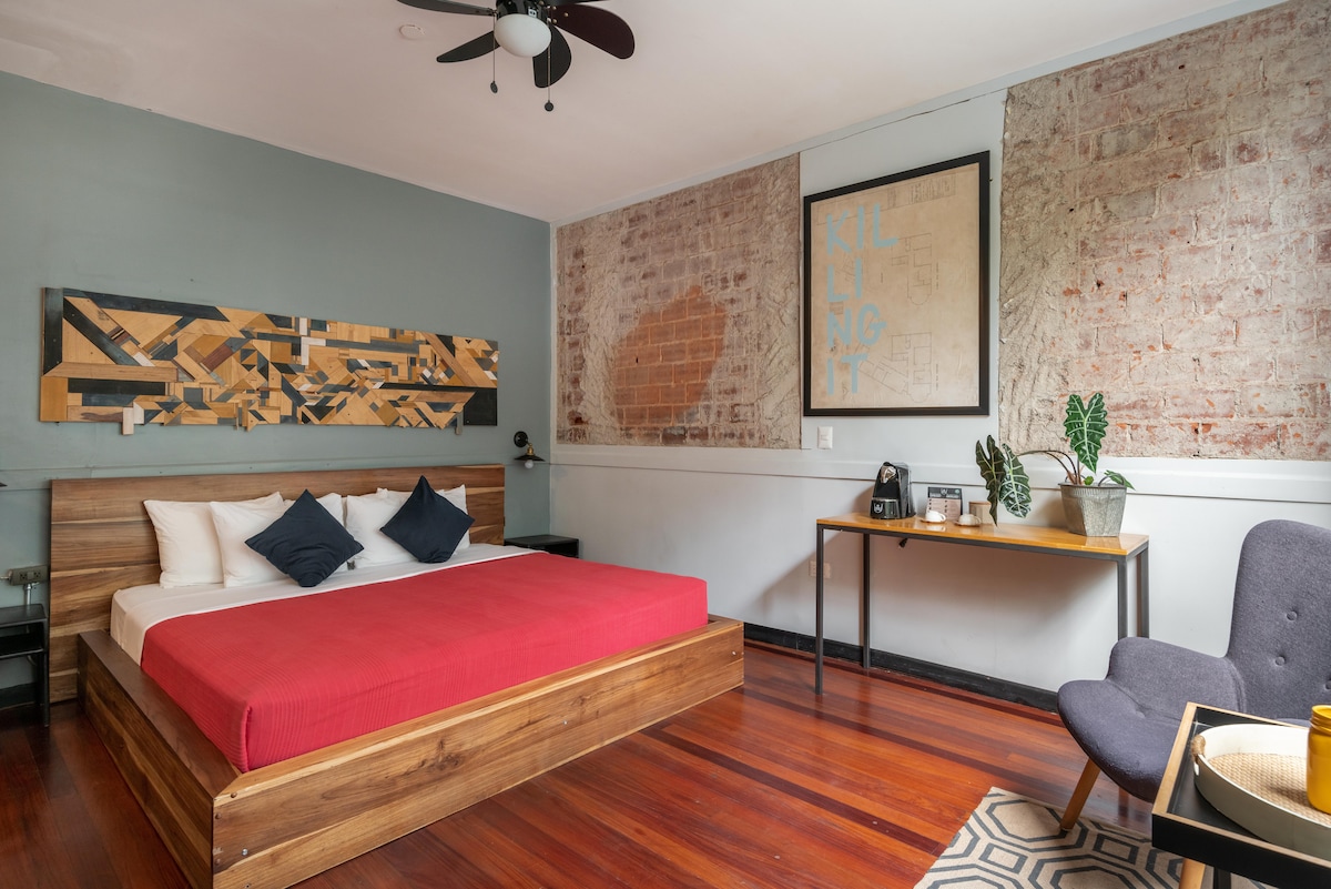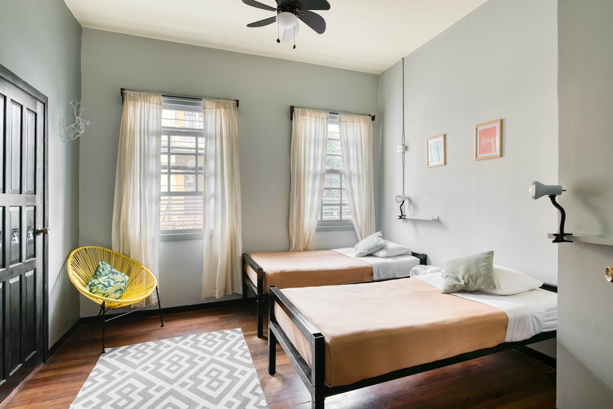 SJO空港から8 kmのところに、このモダンで快適な1~2人用のお部屋があります。コスタリカでの最初の夜や最後の夜に最適です。天気は良く、エアコンは必要ありません。テラスから、ファイヤーピットのそばで、またはパティオのハンモックで揺れながら美しい夕日を楽しむことができます。サービスはパーソナライズされています。 朝食はお1人様につき15ドルの追加料金でご利用いただけます。 長期滞在のゲストを歓迎します。 必要なときはいつでも、10ドルでセルフサービスのランドリーサービスをご利用いただけます。
