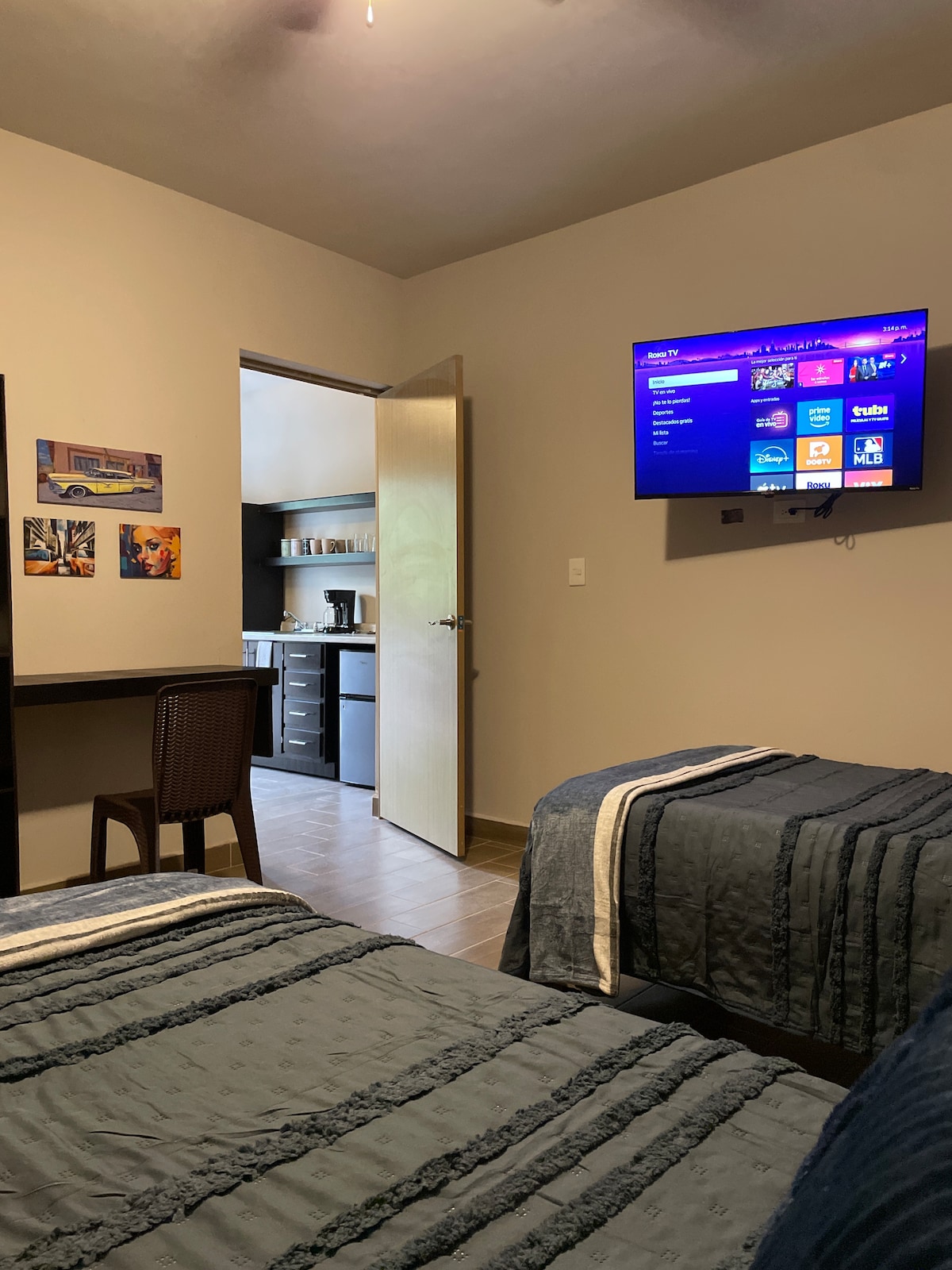 市内で最も美しく安全な住宅地区の一つに位置し、私たちはあなたのシウダード・オブレゴン訪問を静かで快適でプライベートで安全な経験にするために、私たちのエグゼクティブアパートメントをあなたのサービスに提供します。 当社のアパートメントは、お客様のご滞在のために新しく、清潔で快適な空間を提供し、お客様をお迎えするために必要なすべてのものを備えています!
