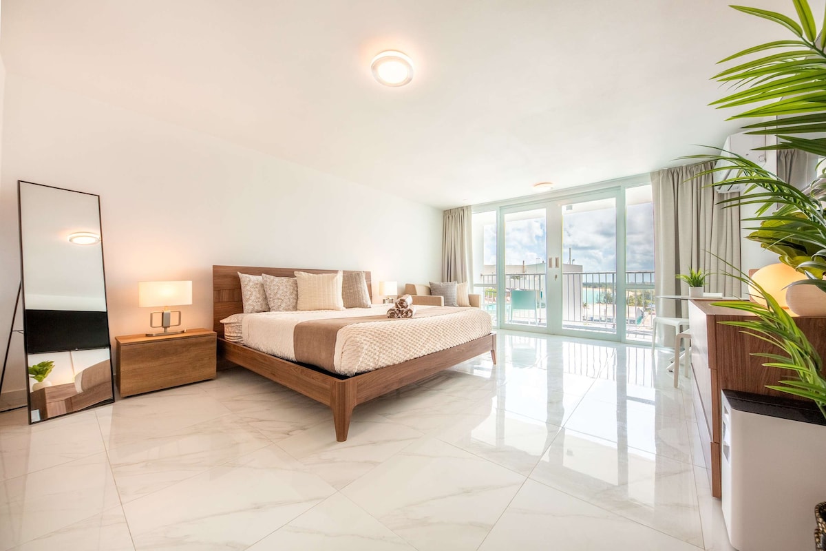 The Lagoon Pad -FULLY REMODELED Modern luxurious, beach front and full lagoon view apartment with ocean views from the balcony and bedrooms. Enjoy the sunrise/sunsets overlooking the Condado Lagoon. The 30 feet long water view will leave you breathless. Enjoy the 70"tv, have a glass of wine or cup of coffee made from the Keurig coffee machine, and feel your stress melt away. We have a X Box and for the makeup lovers, a lighted makeup table. Luxury,fun,and ocean views await.
